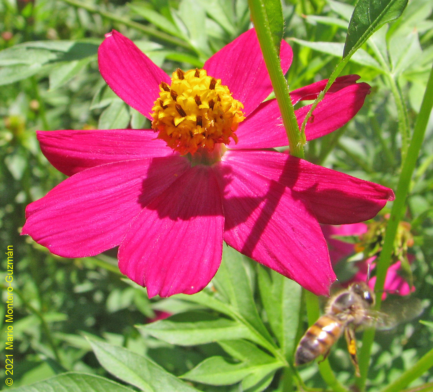 Apis mellifera | species | Cosmos caudatus | species | visitsFlowersOf | Animalia | Arthropoda | Insecta | Hymenoptera | Apidae | Apis | Plantae | Tracheophyta | Magnoliopsida | Asterales | Asteraceae | Cosmos | 10.213774 | -83.789787 | 2021 | 5 | 3 | http://creativecommons.org/licenses/by-nc/4.0/ | https://www.inaturalist.org/observations/78028800 | |