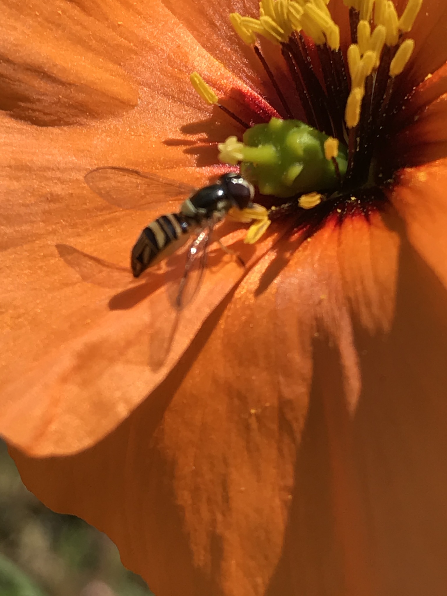 Allograpta obliqua | species | Stylomecon heterophylla | species | eats | Animalia | Arthropoda | Insecta | Diptera | Syrphidae | Allograpta | Plantae | Tracheophyta | Magnoliopsida | Ranunculales | Papaveraceae | Stylomecon | 37.483703 | -121.83332 | 2021 | 5 | 8 | http://creativecommons.org/licenses/by-nc/4.0/ | https://www.inaturalist.org/observations/78091070 | |