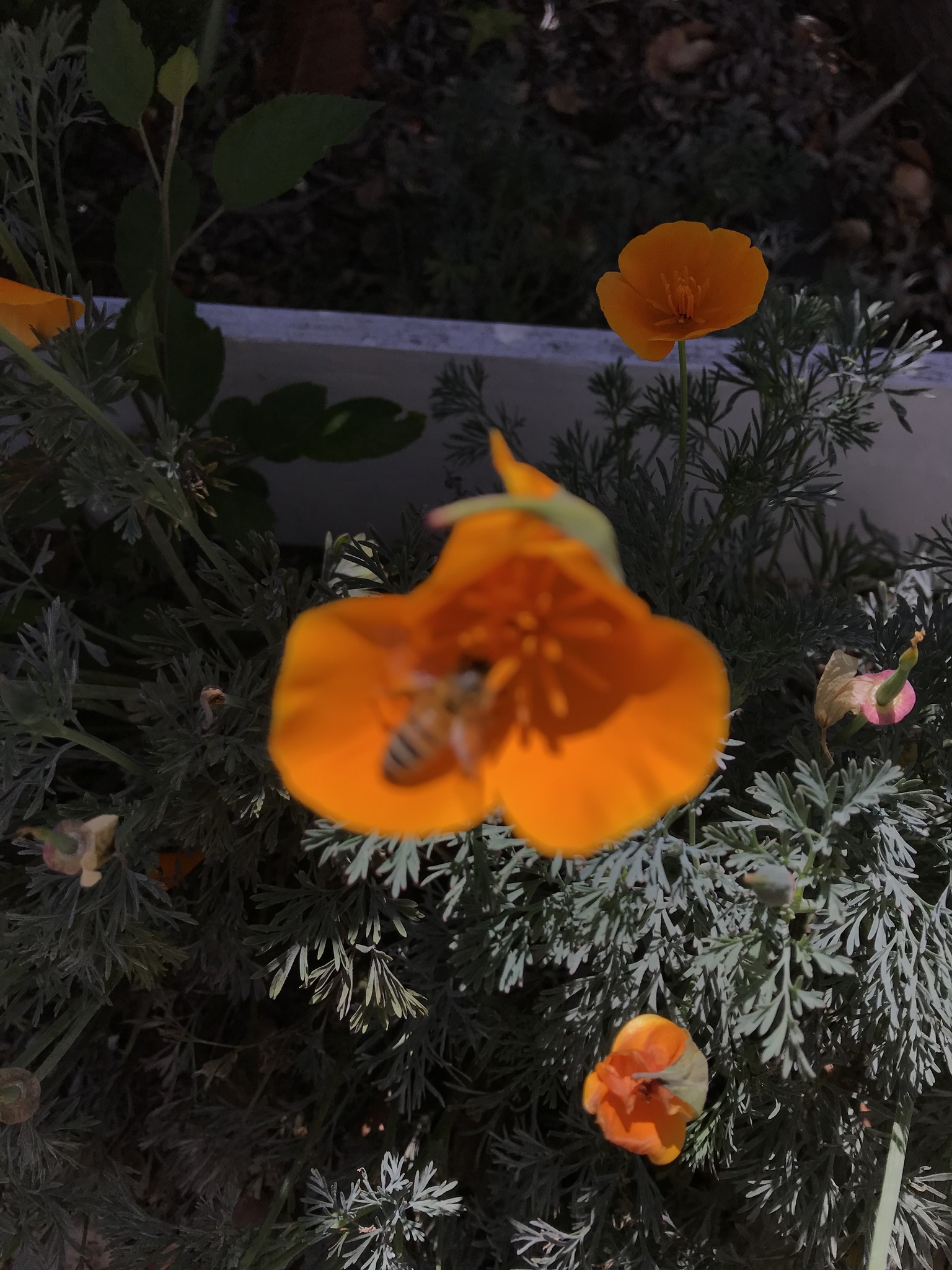 Apis mellifera | species | Eschscholzia californica | species | eats | Animalia | Arthropoda | Insecta | Hymenoptera | Apidae | Apis | Plantae | Tracheophyta | Magnoliopsida | Ranunculales | Papaveraceae | Eschscholzia | 37.978603 | -122.542213 | 2021 | 5 | 7 | http://creativecommons.org/licenses/by-nc/4.0/ | https://www.inaturalist.org/observations/78099592 | |