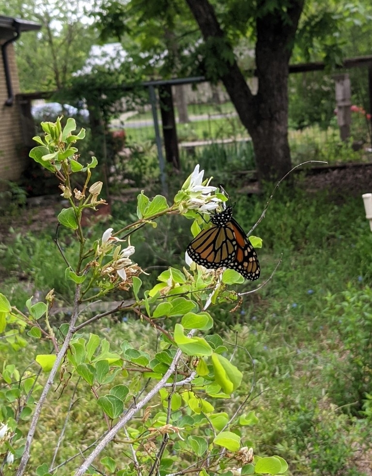 Danaus plexippus | species | Bauhinia lunarioides | species | visits | Animalia | Arthropoda | Insecta | Lepidoptera | Nymphalidae | Danaus | Plantae | Tracheophyta | Magnoliopsida | Fabales | Fabaceae | Bauhinia | 30.356822 | -97.762794 | 2021 | 5 | 8 | http://creativecommons.org/licenses/by/4.0/ | https://www.inaturalist.org/observations/77913972 | |