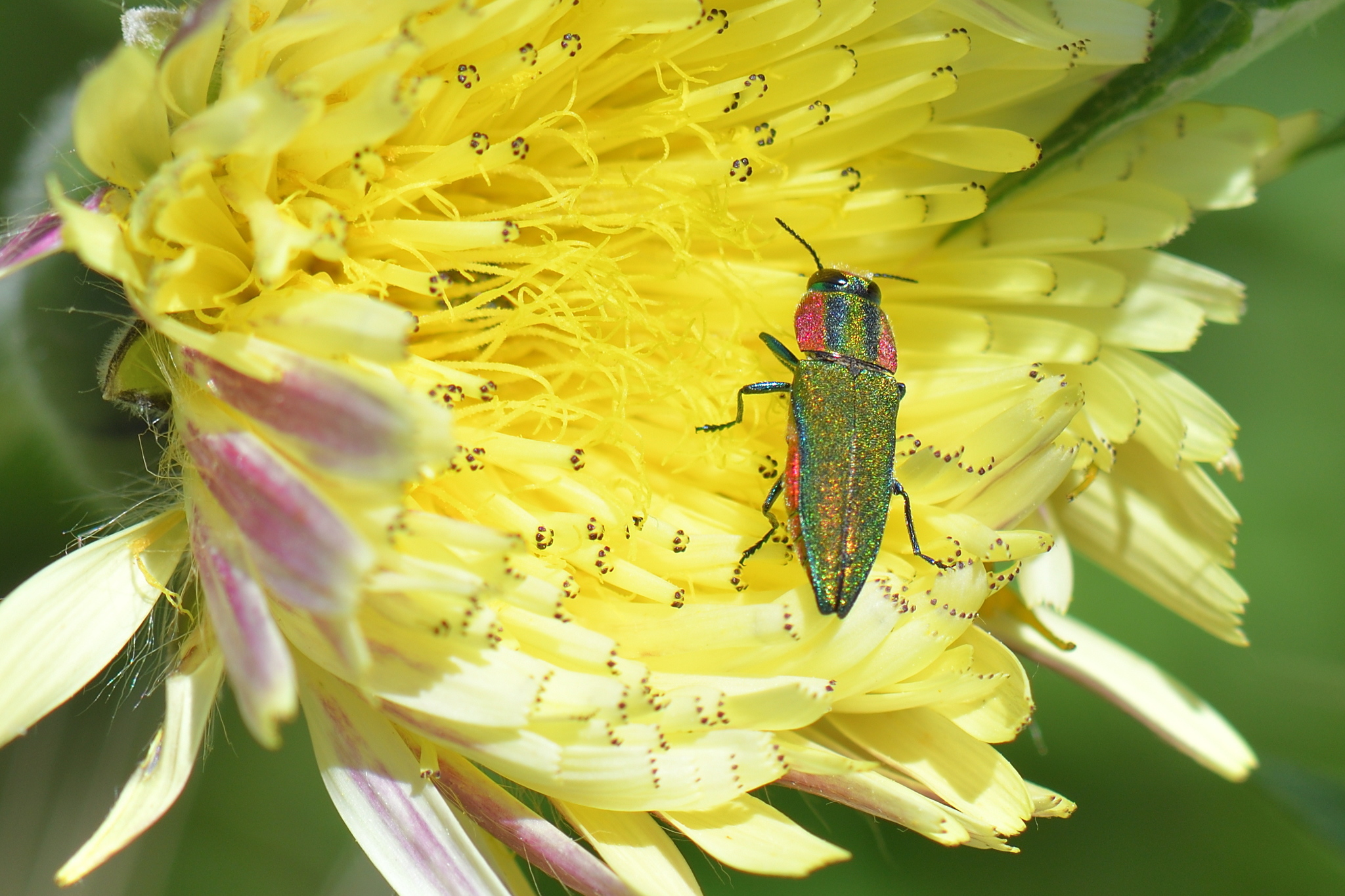 Anthaxia hungarica | species | Urospermum dalechampii | species | visitsFlowersOf | Animalia | Arthropoda | Insecta | Coleoptera | Buprestidae | Anthaxia | Plantae | Tracheophyta | Magnoliopsida | Asterales | Asteraceae | Urospermum | 43.194267 | 6.009185 | 2021 | 5 | 8 | http://creativecommons.org/licenses/by-nc/4.0/ | https://www.inaturalist.org/observations/77891587 | |