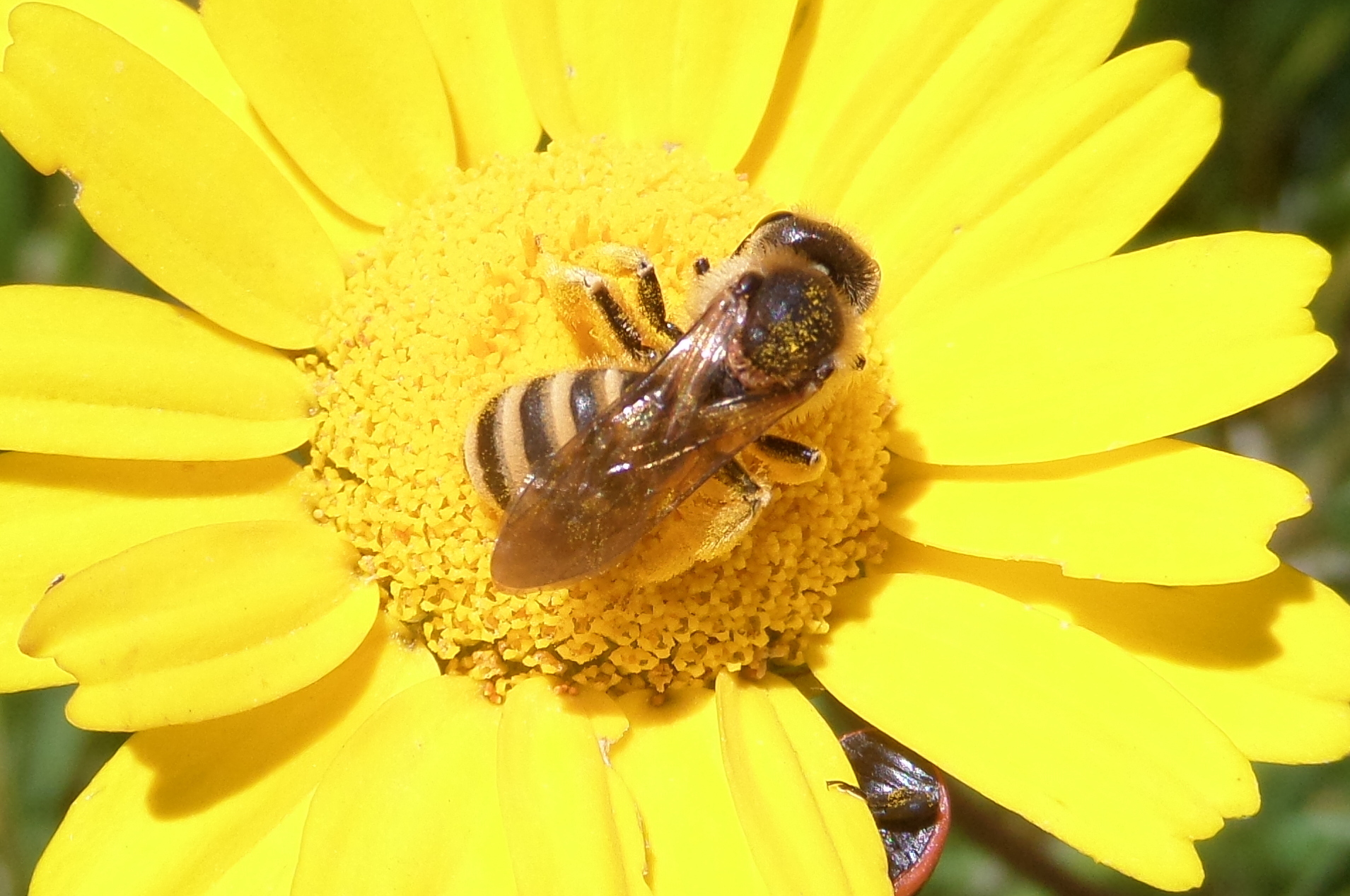 Halictus scabiosae | species | Glebionis coronaria | species | visitsFlowersOf | Animalia | Arthropoda | Insecta | Hymenoptera | Halictidae | Halictus | Plantae | Tracheophyta | Magnoliopsida | Asterales | Asteraceae | Glebionis | 40.590522 | -8.121145 | 2021 | 4 | 29 | http://creativecommons.org/licenses/by-nc/4.0/ | https://www.inaturalist.org/observations/77905107 | |