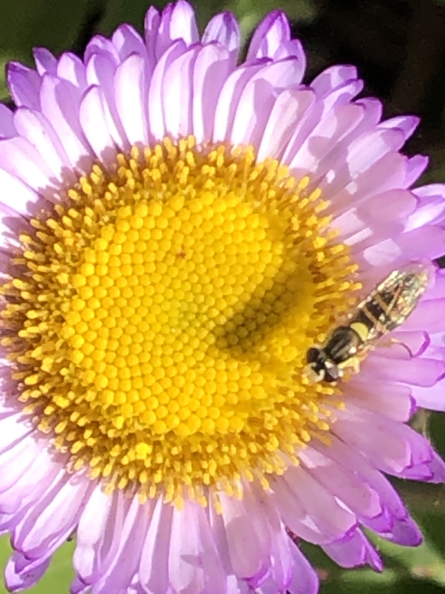 Sphaerophoria sulphuripes | species | Erigeron glaucus | species | eats | Animalia | Arthropoda | Insecta | Diptera | Syrphidae | Sphaerophoria | Plantae | Tracheophyta | Magnoliopsida | Asterales | Asteraceae | Erigeron | 37.815342 | -122.217992 | 2021 | 5 | 7 | http://creativecommons.org/licenses/by-nc/4.0/ | https://www.inaturalist.org/observations/77764308 | |