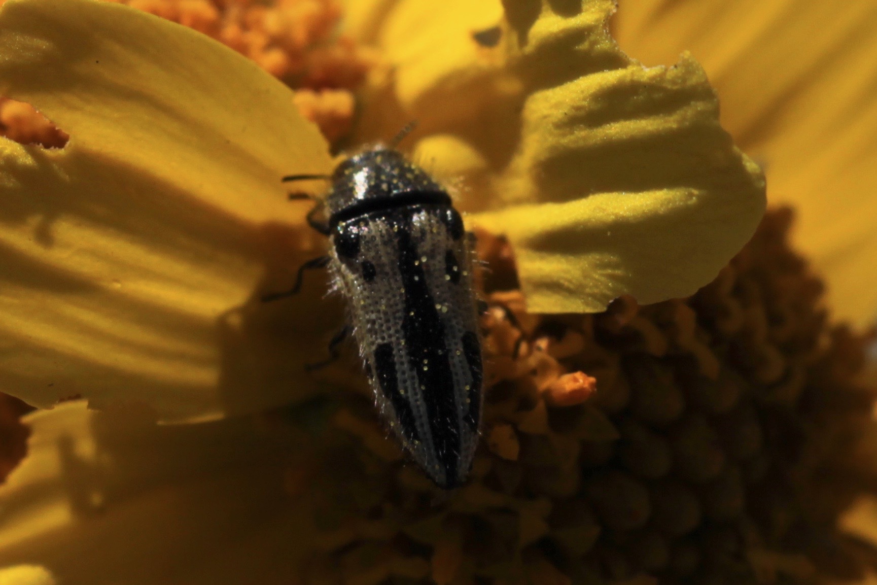 Acmaeodera latiflava | species | Encelia farinosa | species | visitsFlowersOf | Animalia | Arthropoda | Insecta | Coleoptera | Buprestidae | Acmaeodera | Plantae | Tracheophyta | Magnoliopsida | Asterales | Asteraceae | Encelia | 33.013172 | -116.453623 | 2021 | 5 | 3 | http://creativecommons.org/licenses/by-nc/4.0/ | https://www.inaturalist.org/observations/77694496 | |