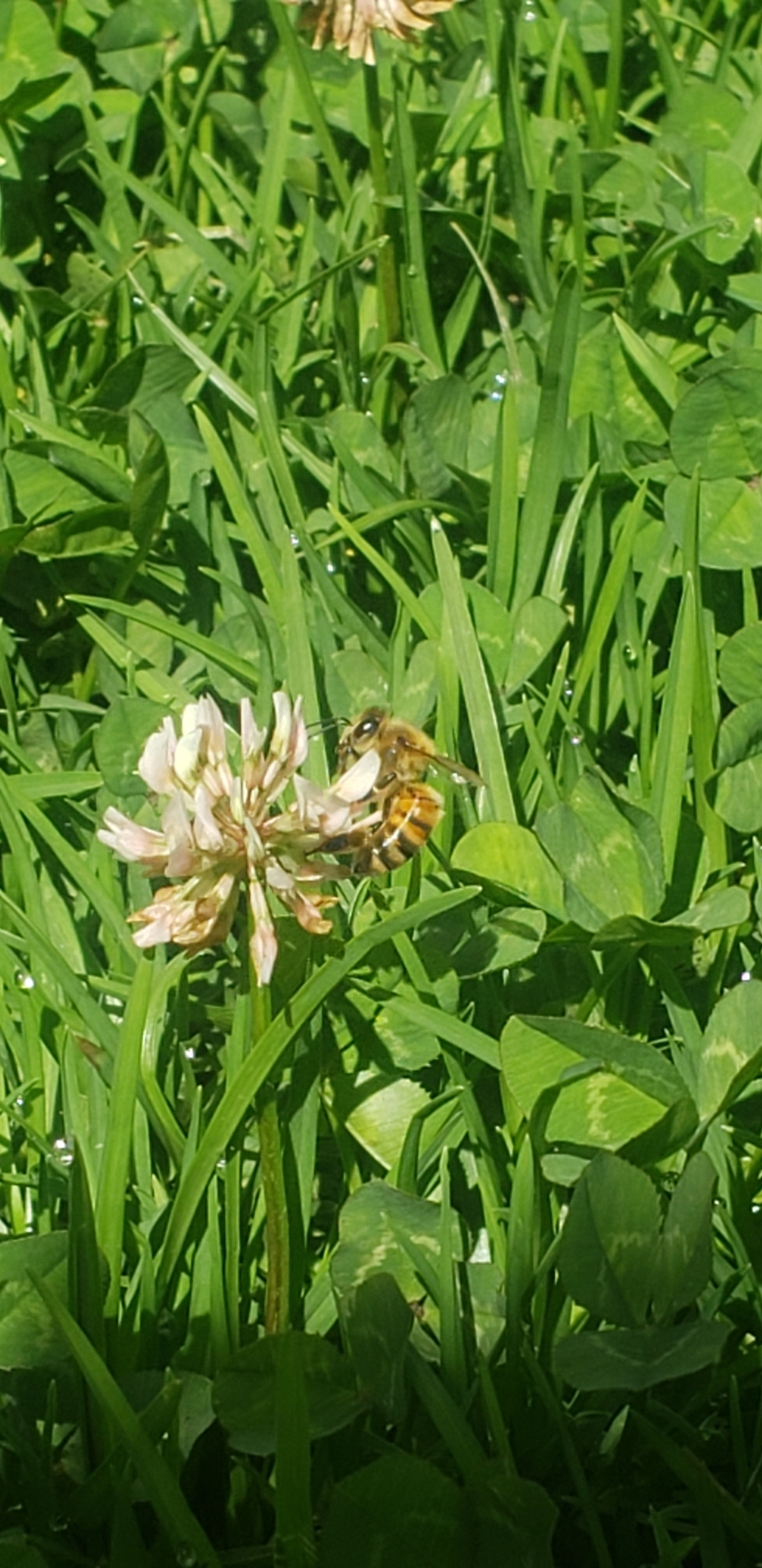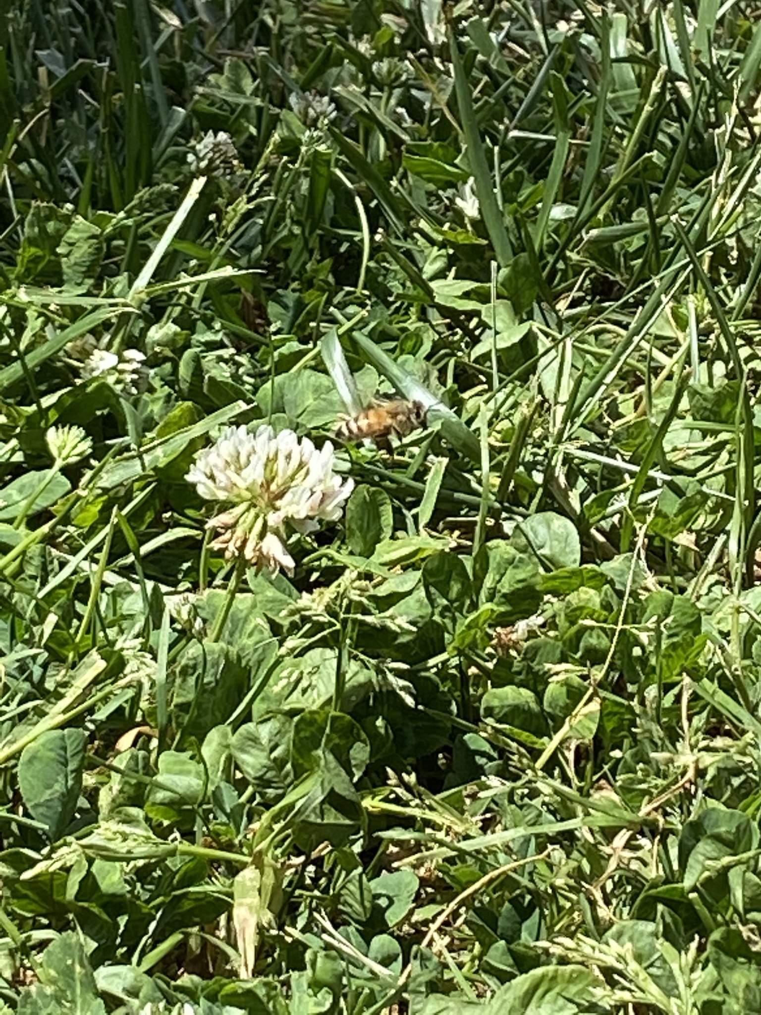 Apis mellifera | species | Trifolium repens | species | eats | Animalia | Arthropoda | Insecta | Hymenoptera | Apidae | Apis | Plantae | Tracheophyta | Magnoliopsida | Fabales | Fabaceae | Trifolium | 37.870937 | -122.262025 | 2021 | 5 | 6 | http://creativecommons.org/licenses/by-nc/4.0/ | https://www.inaturalist.org/observations/77716213 | |