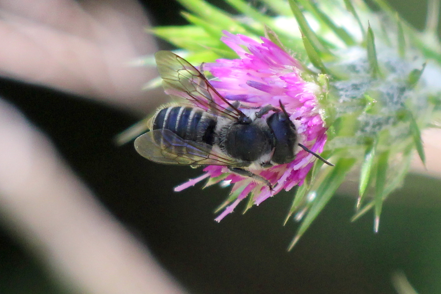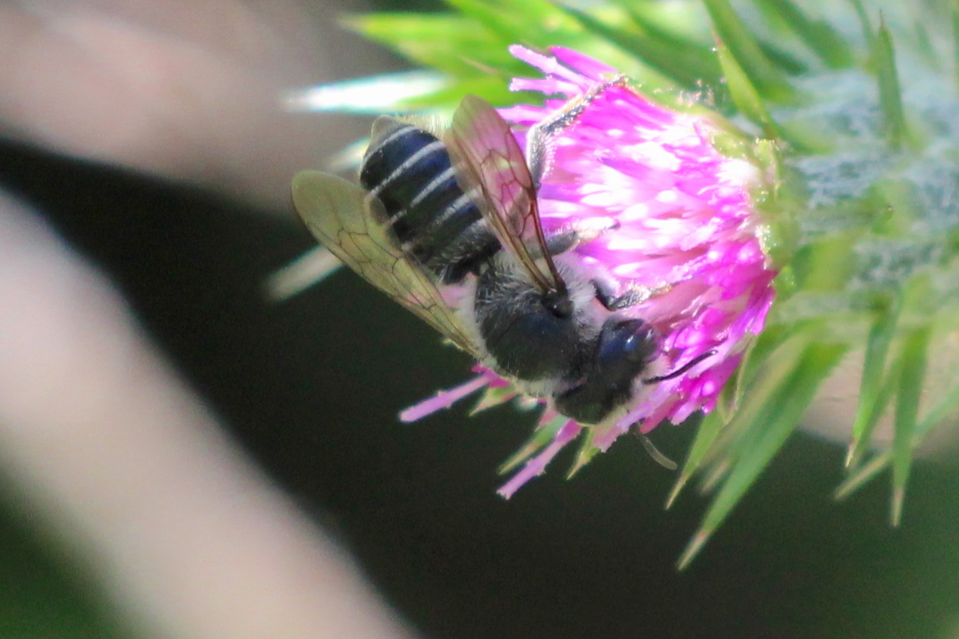 Megachile montivaga | species | Carduus pycnocephalus | species | visitsFlowersOf | Animalia | Arthropoda | Insecta | Hymenoptera | Megachilidae | Megachile | Plantae | Tracheophyta | Magnoliopsida | Asterales | Asteraceae | Carduus | 34.082132 | -118.705332 | 2021 | 5 | 4 | http://creativecommons.org/licenses/by-nc/4.0/ | https://www.inaturalist.org/observations/77758367 | |