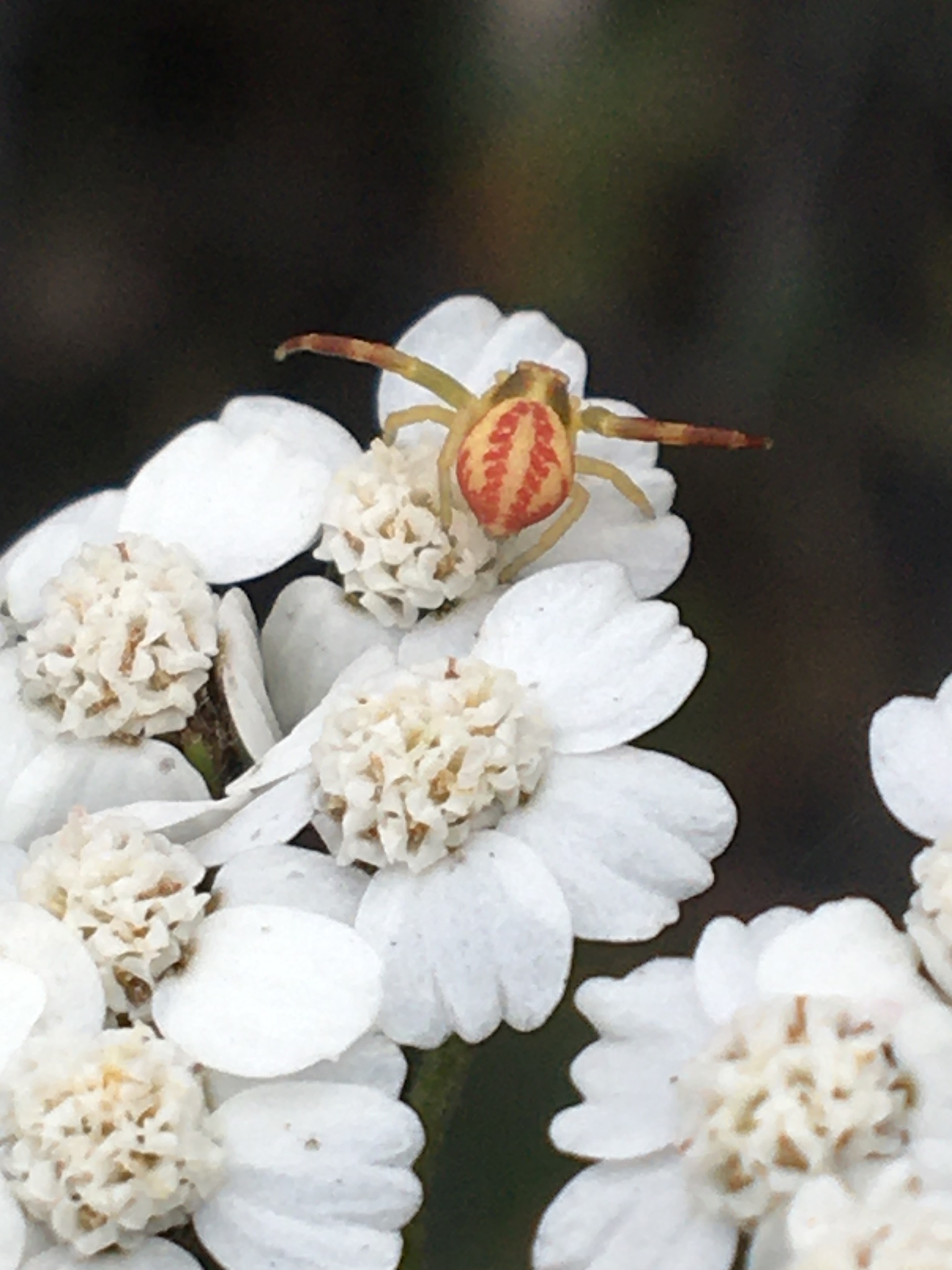 Misumena vatia | species | Achillea millefolium | species | visits | Animalia | Arthropoda | Arachnida | Araneae | Thomisidae | Misumena | Plantae | Tracheophyta | Magnoliopsida | Asterales | Asteraceae | Achillea | 60.828425 | -135.931428 | 2020 | 8 | 20 | http://creativecommons.org/licenses/by-nc/4.0/ | https://www.inaturalist.org/observations/77519553 | |