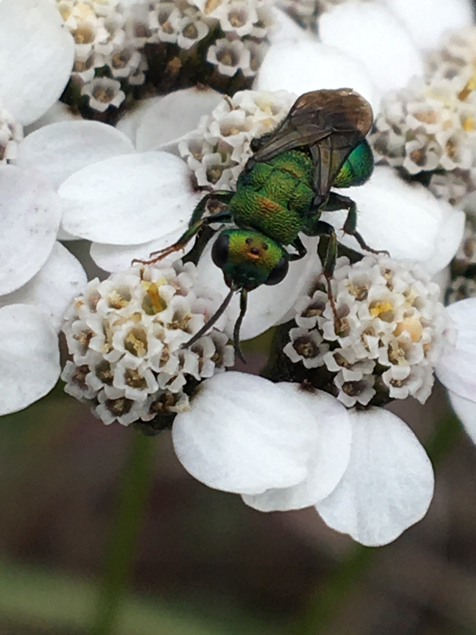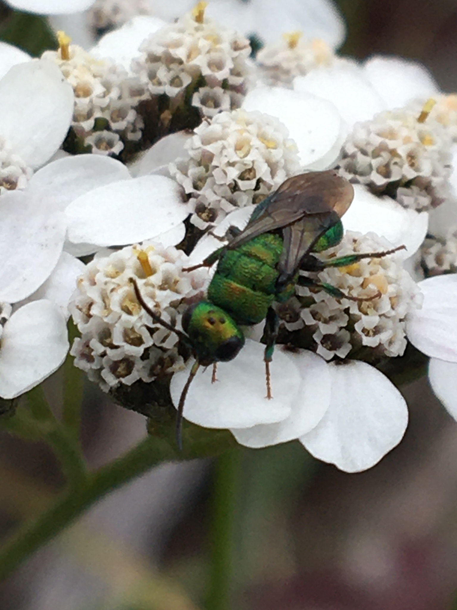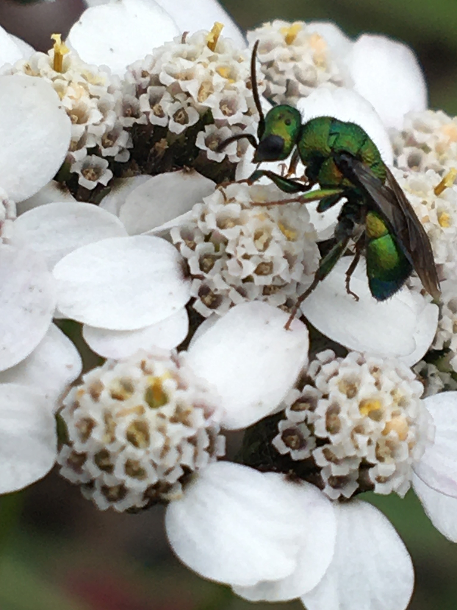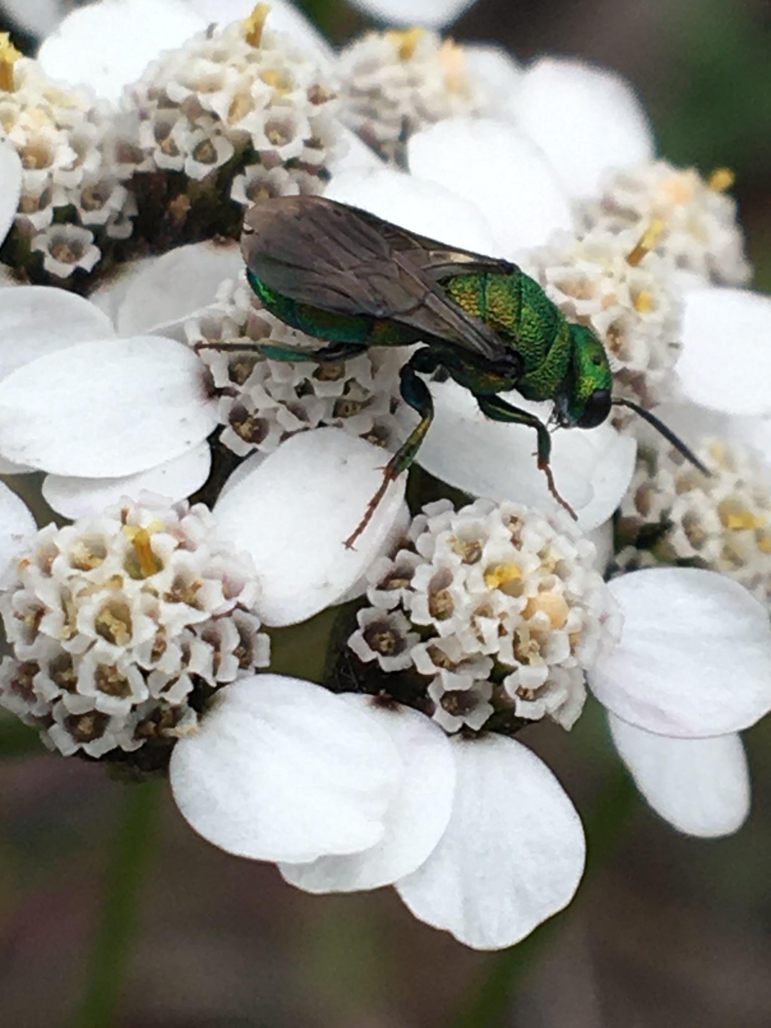 Hedychrum | genus | Achillea millefolium | species | visits | Animalia | Arthropoda | Insecta | Hymenoptera | Chrysididae | Hedychrum | Plantae | Tracheophyta | Magnoliopsida | Asterales | Asteraceae | Achillea | 60.832853 | -135.922928 | 2020 | 8 | 20 | http://creativecommons.org/licenses/by-nc/4.0/ | https://www.inaturalist.org/observations/77525728 | |
