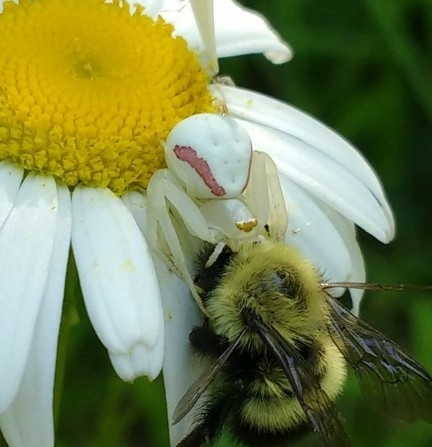 Misumena vatia | species | Bombus | genus | preysOn | Animalia | Arthropoda | Arachnida | Araneae | Thomisidae | Misumena | Animalia | Arthropoda | Insecta | Hymenoptera | Apidae | Bombus | 42.419191 | -72.339616 | 2016 | 6 | 24 | http://creativecommons.org/licenses/by-nc/4.0/ | https://www.inaturalist.org/observations/77398718 | |