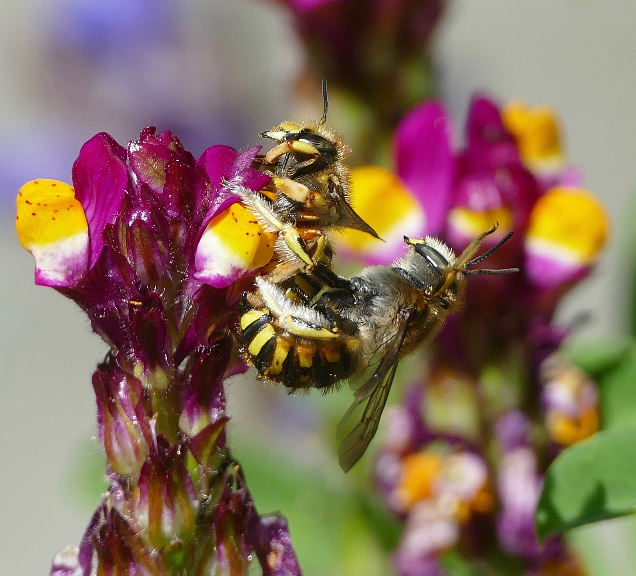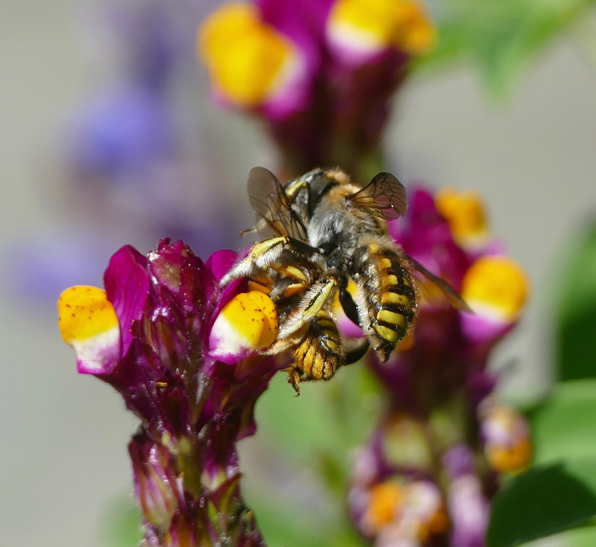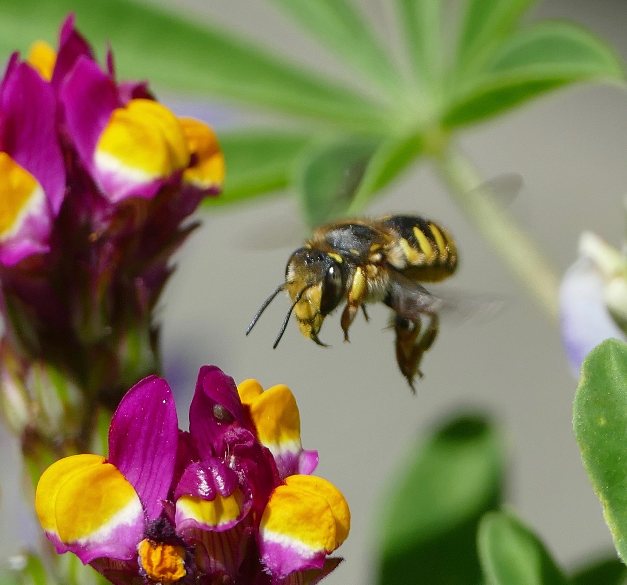 Anthidium manicatum | species | Linaria | genus | eats | Animalia | Arthropoda | Insecta | Hymenoptera | Megachilidae | Anthidium | Plantae | Tracheophyta | Magnoliopsida | Lamiales | Plantaginaceae | Linaria | 37.85436 | -122.281232 | 2021 | 5 | 4 | http://creativecommons.org/licenses/by/4.0/ | https://www.inaturalist.org/observations/77344269 | |