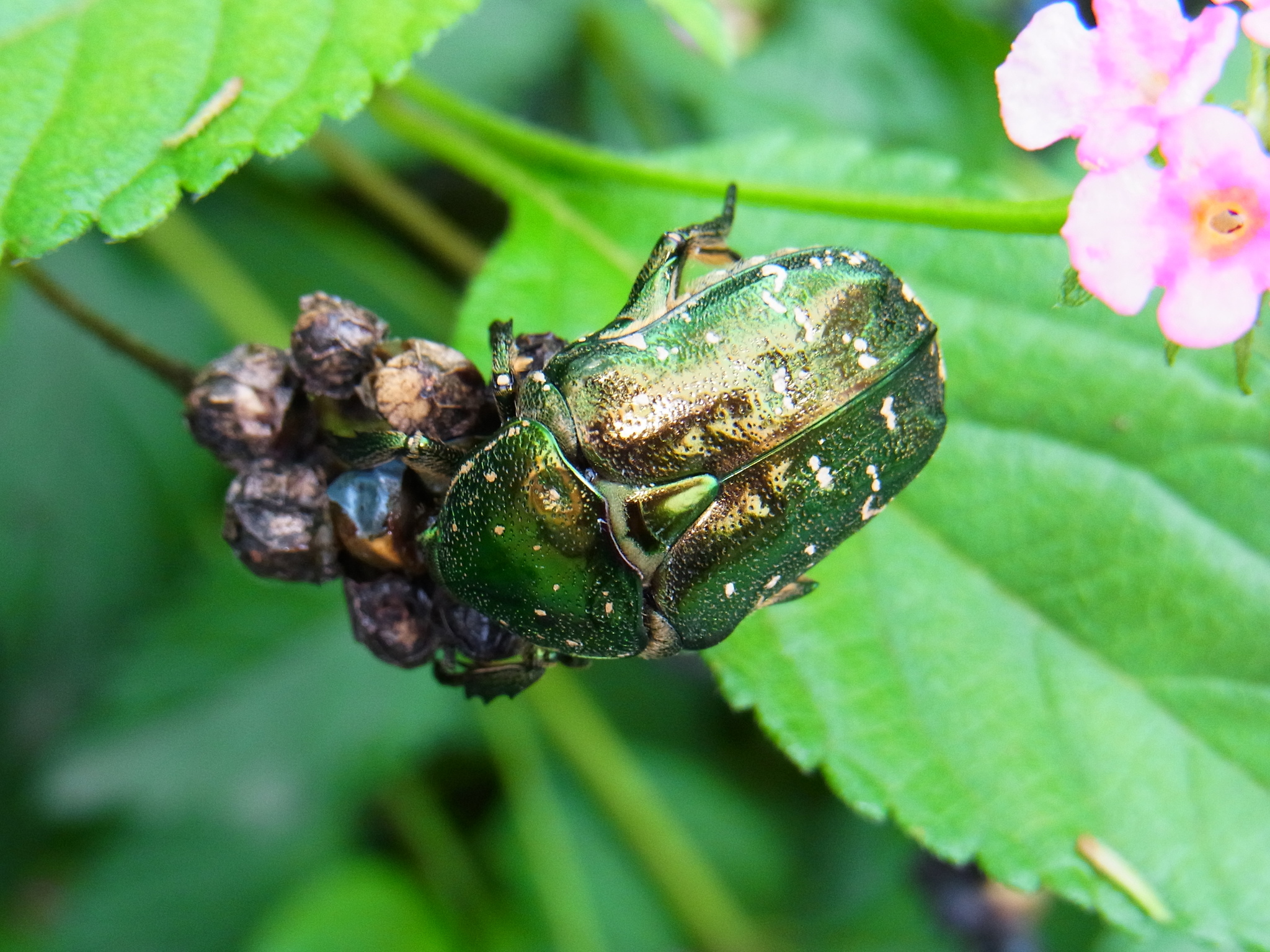 Protaetia orientalis | species | Lantana camara | species | eats | Animalia | Arthropoda | Insecta | Coleoptera | Scarabaeidae | Protaetia | Plantae | Tracheophyta | Magnoliopsida | Lamiales | Verbenaceae | Lantana | 33.549207 | 133.488958 | 2015 | 7 | 7 | http://creativecommons.org/publicdomain/zero/1.0/ | https://www.inaturalist.org/observations/77360999 | |