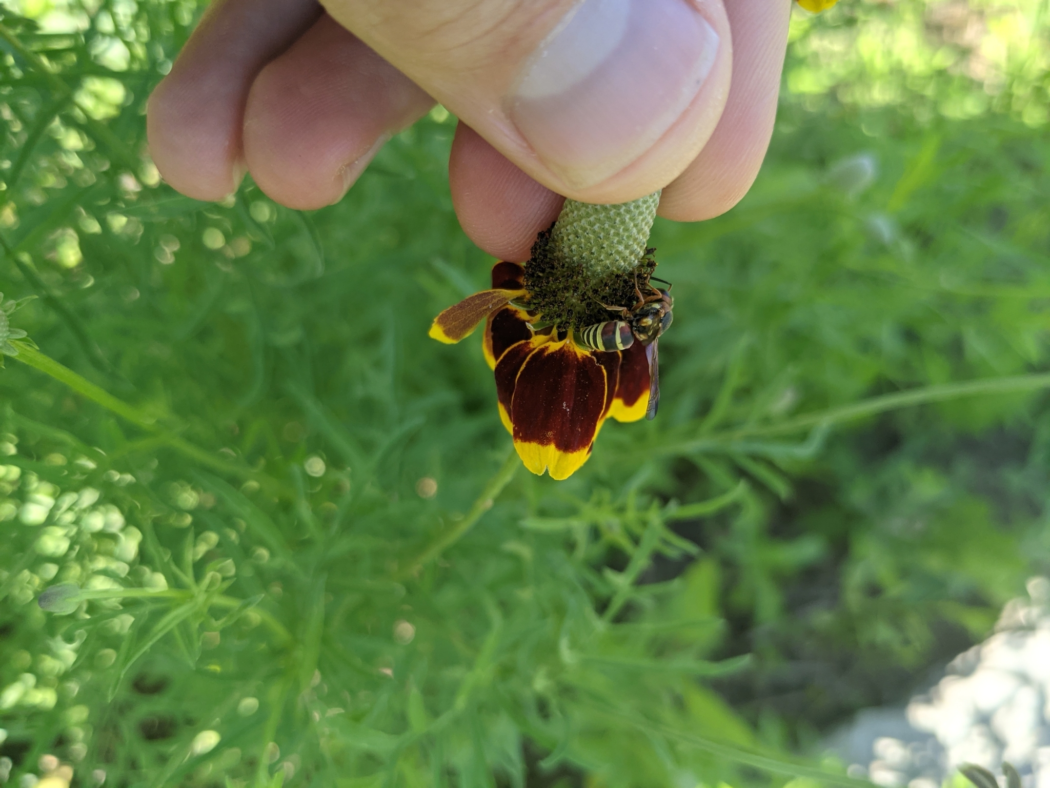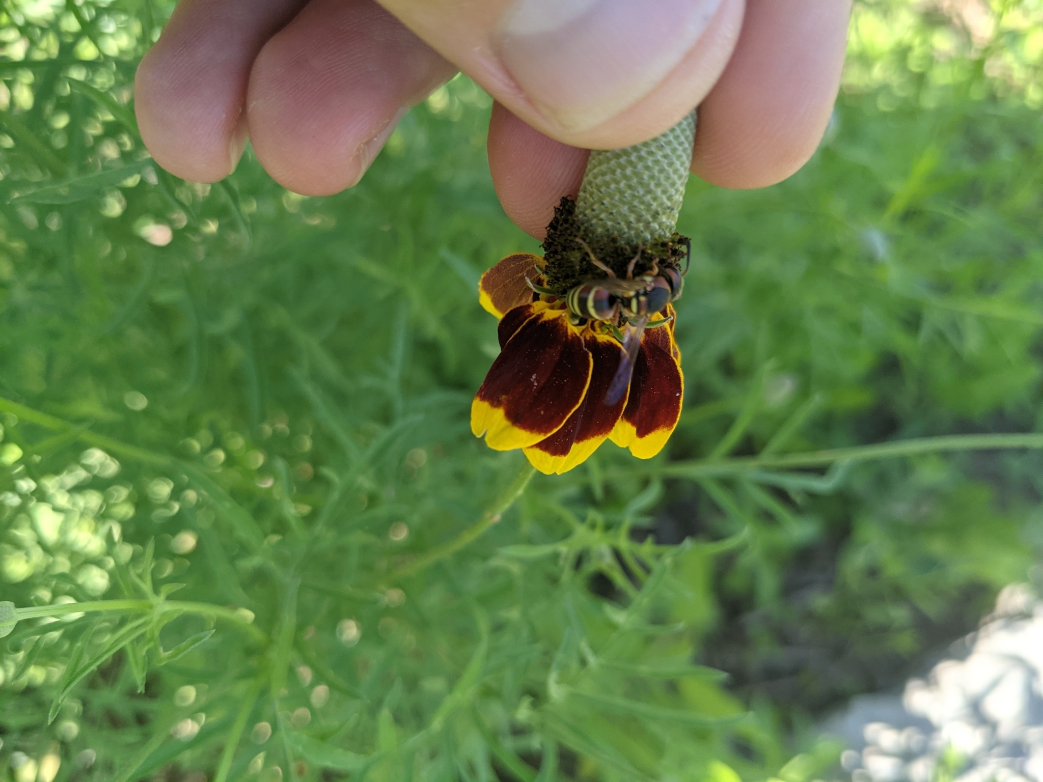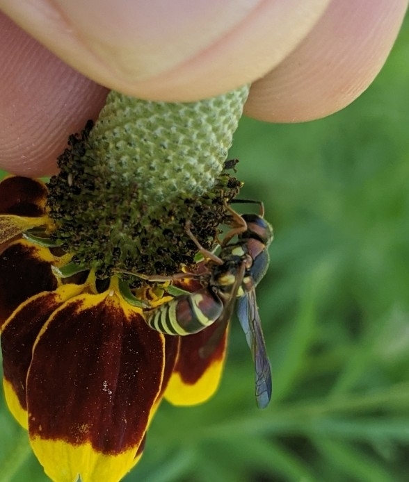 Euodynerus annulatus | species | Ratibida columnifera | species | eats | Animalia | Arthropoda | Insecta | Hymenoptera | Eumenidae | Euodynerus | Plantae | Tracheophyta | Magnoliopsida | Asterales | Asteraceae | Ratibida | 29.42191 | -98.585568 | 2021 | 5 | 4 | http://creativecommons.org/licenses/by/4.0/ | https://www.inaturalist.org/observations/77359959 | |