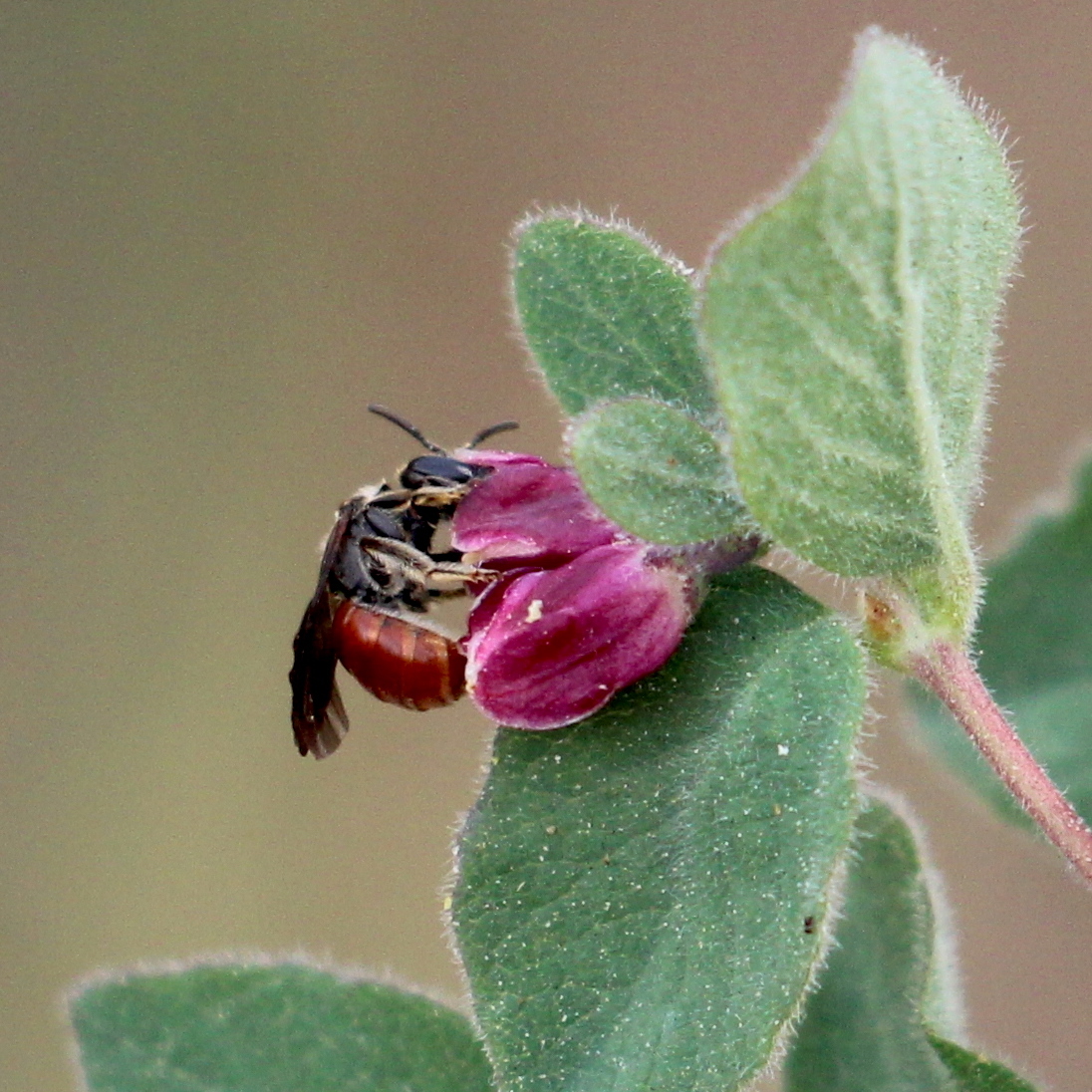 Lasioglossum ovaliceps | species | Symphoricarpos mollis | species | eats | Animalia | Arthropoda | Insecta | Hymenoptera | Halictidae | Lasioglossum | Plantae | Tracheophyta | Magnoliopsida | Dipsacales | Caprifoliaceae | Symphoricarpos | 34.099772 | -118.65762 | 2021 | 5 | 1 | http://creativecommons.org/licenses/by-nc/4.0/ | https://www.inaturalist.org/observations/77361529 | |