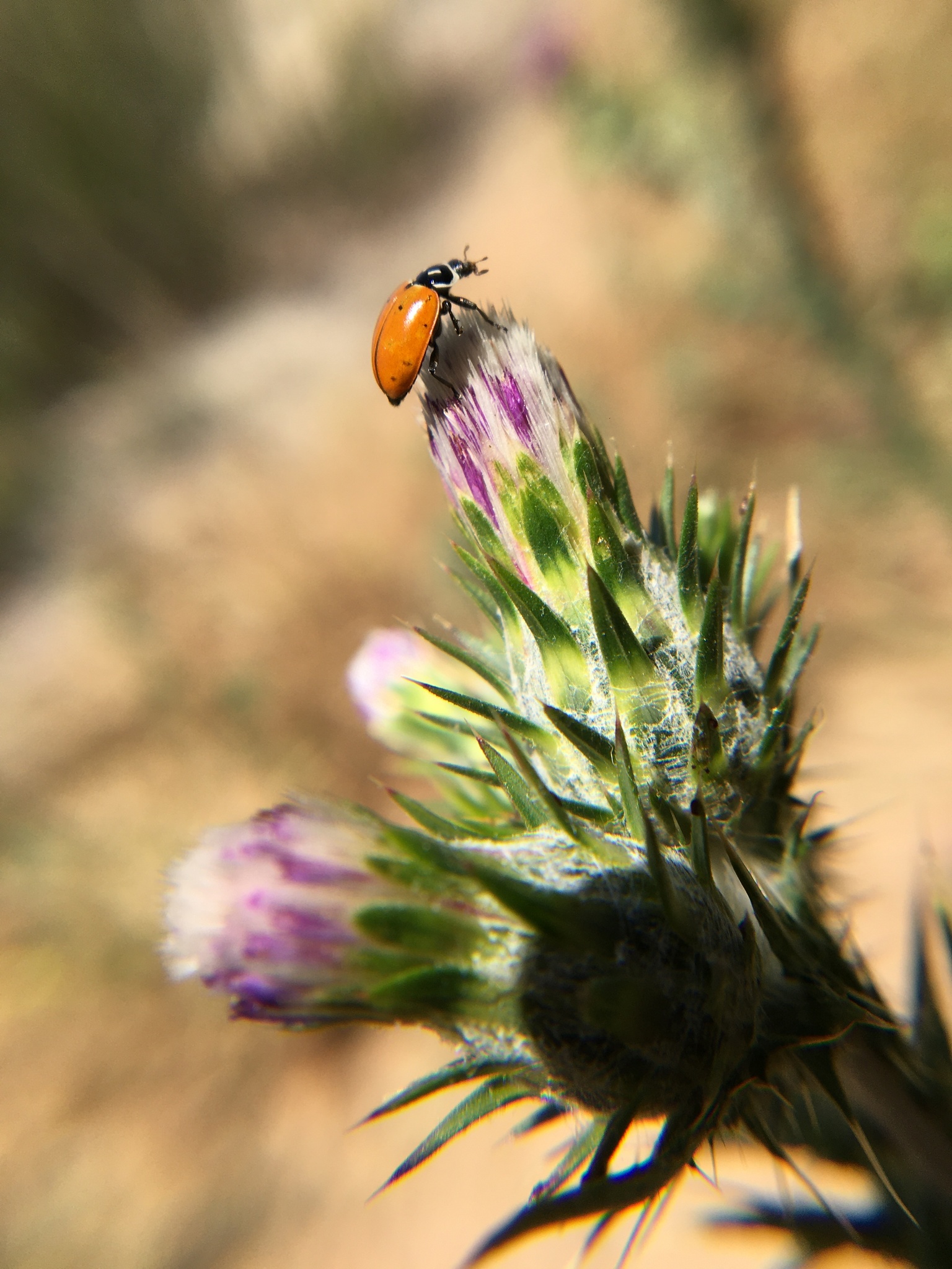 Hippodamia convergens | species | Cirsium | genus | visitsFlowersOf | Animalia | Arthropoda | Insecta | Coleoptera | Coccinellidae | Hippodamia | Plantae | Tracheophyta | Magnoliopsida | Asterales | Asteraceae | Cirsium | 33.35028 | -117.026497 | 2021 | 5 | 3 | http://creativecommons.org/licenses/by-nc/4.0/ | https://www.inaturalist.org/observations/77221081 | |
