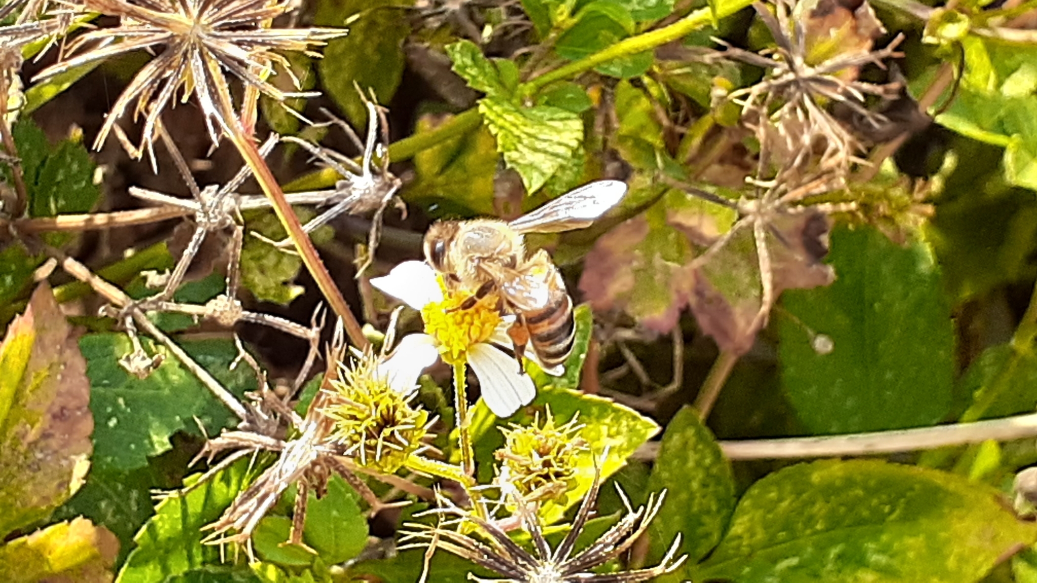Apis mellifera | species | Bidens alba | species | visitsFlowersOf | Animalia | Arthropoda | Insecta | Hymenoptera | Apidae | Apis | Plantae | Tracheophyta | Magnoliopsida | Asterales | Asteraceae | Bidens | 25.996477 | -80.309377 | 2021 | 5 | 3 | http://creativecommons.org/licenses/by-nc/4.0/ | https://www.inaturalist.org/observations/77241150 | |