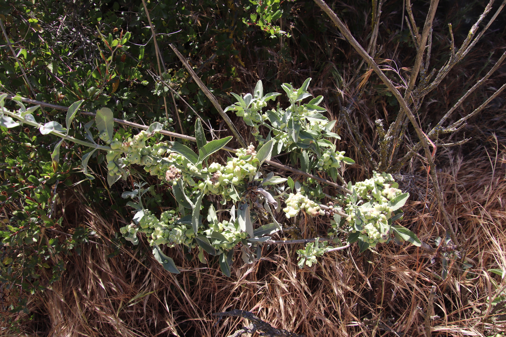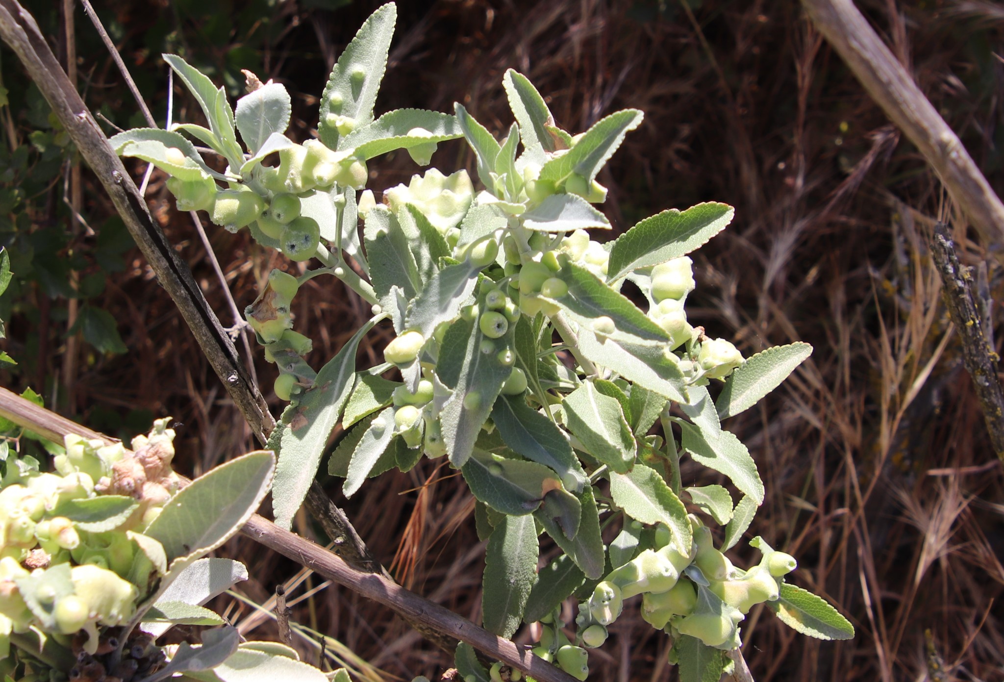 Rhopalomyia audibertiae | species | Salvia apiana | species | hasHost | Animalia | Arthropoda | Insecta | Diptera | Cecidomyiidae | Rhopalomyia | Plantae | Tracheophyta | Magnoliopsida | Lamiales | Lamiaceae | Salvia | 32.838993 | -117.0447 | 2021 | 5 | 3 | http://creativecommons.org/licenses/by/4.0/ | https://www.inaturalist.org/observations/77279352 | |