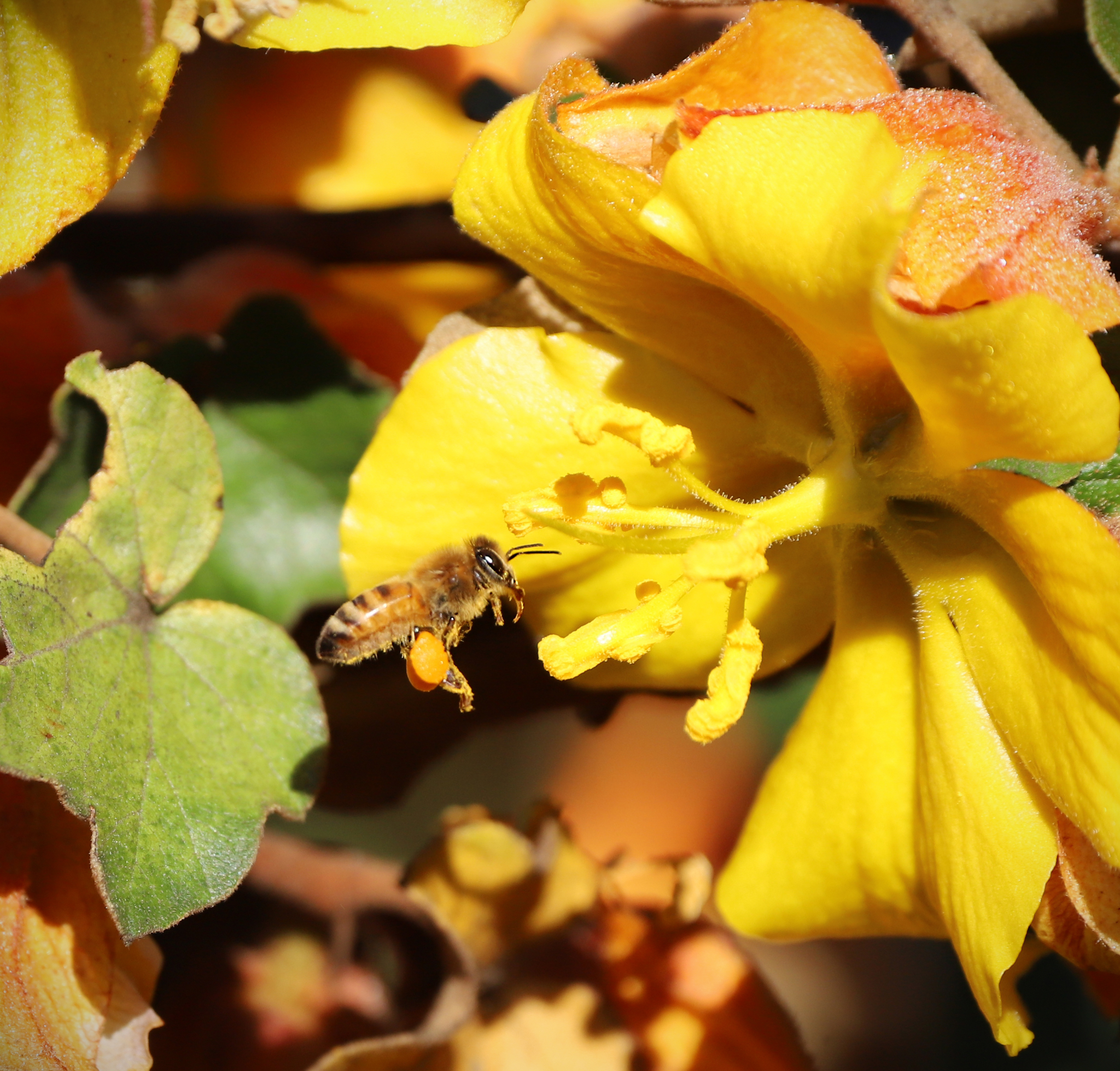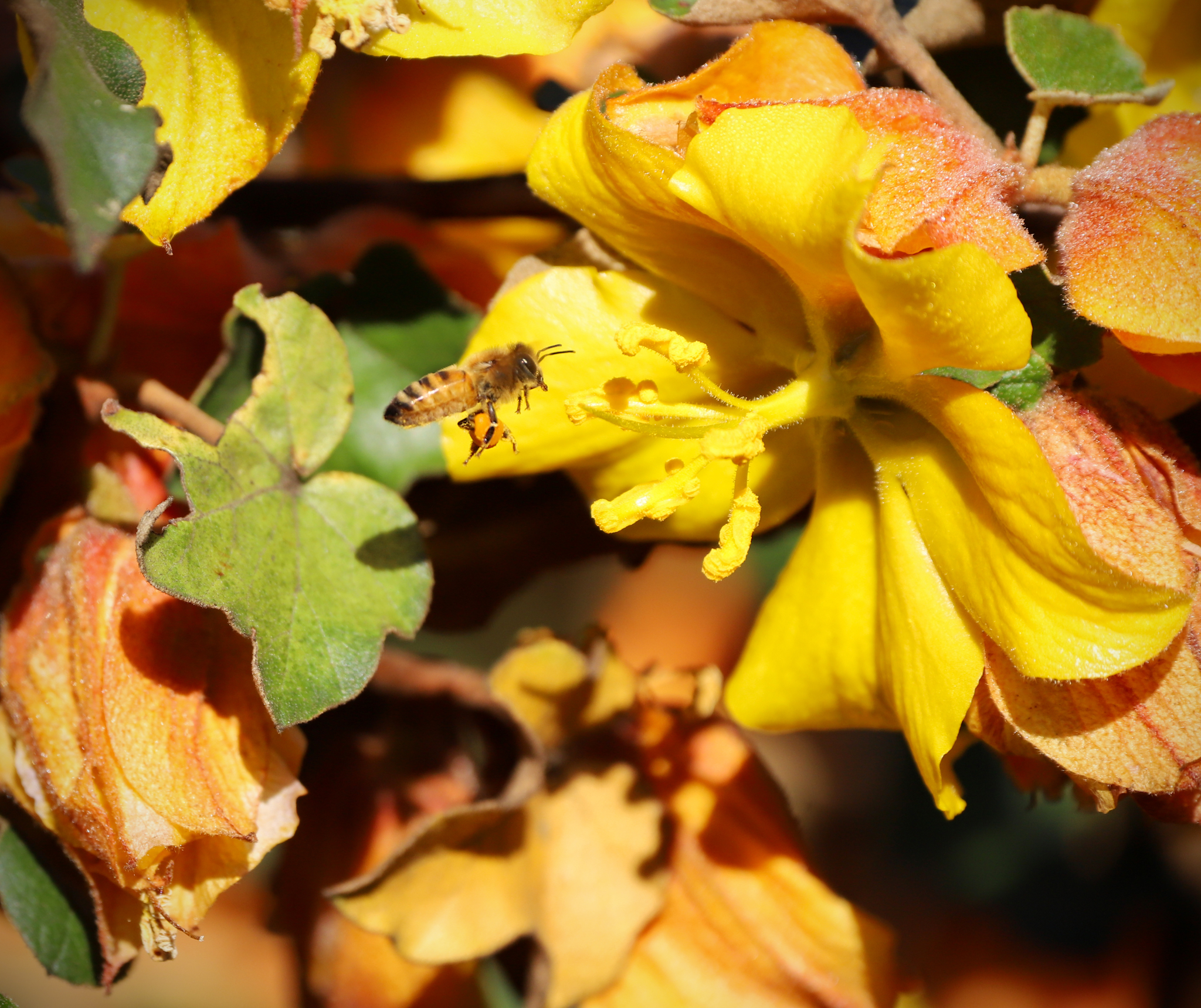 Apis mellifera | species | Fremontodendron californicum | species | eats | Animalia | Arthropoda | Insecta | Hymenoptera | Apidae | Apis | Plantae | Tracheophyta | Magnoliopsida | Malvales | Malvaceae | Fremontodendron | 37.404847 | -121.954709 | 2021 | 4 | 29 | http://creativecommons.org/licenses/by-nc/4.0/ | https://www.inaturalist.org/observations/76971860 | |