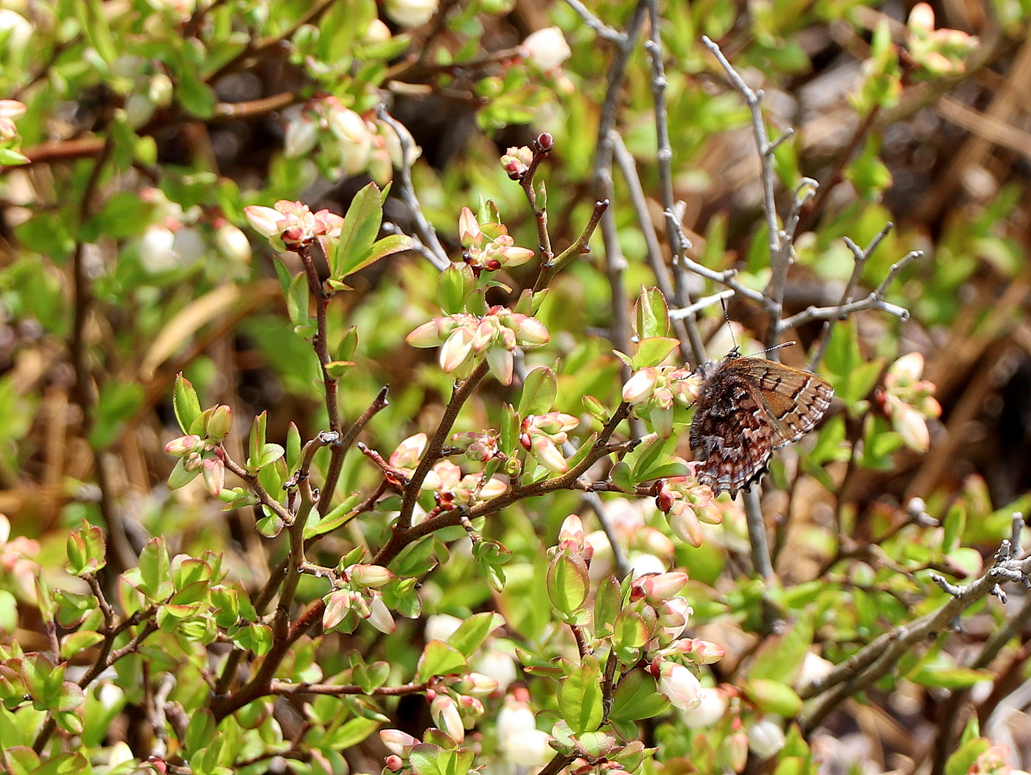 Incisalia niphon | species | Vaccinium angustifolium | species | visitsFlowersOf | Animalia | Arthropoda | Insecta | Lepidoptera | Lycaenidae | Incisalia | Plantae | Tracheophyta | Magnoliopsida | Ericales | Ericaceae | Vaccinium | 41.656173 | -70.548755 | 2021 | 5 | 3 | http://creativecommons.org/licenses/by-nc/4.0/ | https://www.inaturalist.org/observations/77033261 | |