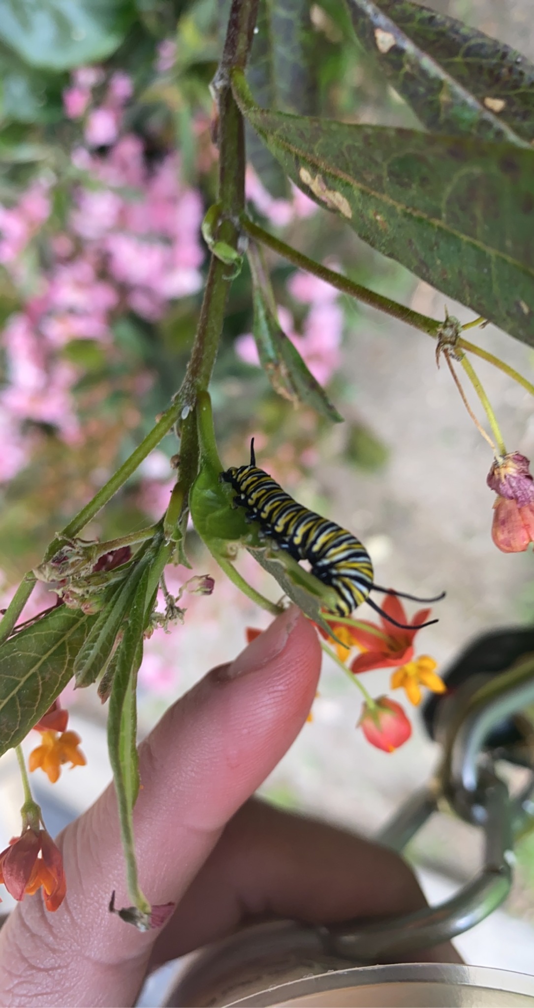 Danaus plexippus | species | Asclepias curassavica | species | interactsWith | Animalia | Arthropoda | Insecta | Lepidoptera | Nymphalidae | Danaus | Plantae | Tracheophyta | Magnoliopsida | Gentianales | Apocynaceae | Asclepias | 34.09613 | -118.112733 | 2021 | 4 | 3 | http://creativecommons.org/licenses/by-nc/4.0/ | https://www.inaturalist.org/observations/76856409 | |