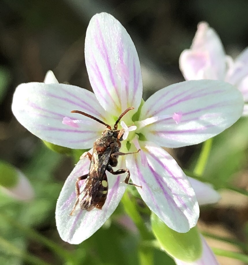 Nomada | genus | Claytonia virginica | species | visitsFlowersOf | Animalia | Arthropoda | Insecta | Hymenoptera | Apidae | Nomada | Plantae | Tracheophyta | Magnoliopsida | Caryophyllales | Montiaceae | Claytonia | 40.140081 | -75.079667 | 2021 | 5 | 2 | http://creativecommons.org/publicdomain/zero/1.0/ | https://www.inaturalist.org/observations/76944903 | |