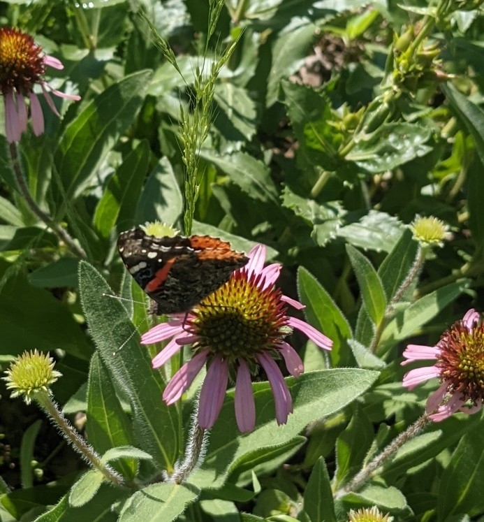 Vanessa atalanta | species | Echinacea angustifolia | species | eats | Animalia | Arthropoda | Insecta | Lepidoptera | Nymphalidae | Vanessa | Plantae | Tracheophyta | Magnoliopsida | Asterales | Asteraceae | Echinacea | 29.575714 | -98.576887 | 2021 | 5 | 2 | http://creativecommons.org/licenses/by/4.0/ | https://www.inaturalist.org/observations/76564432 | |