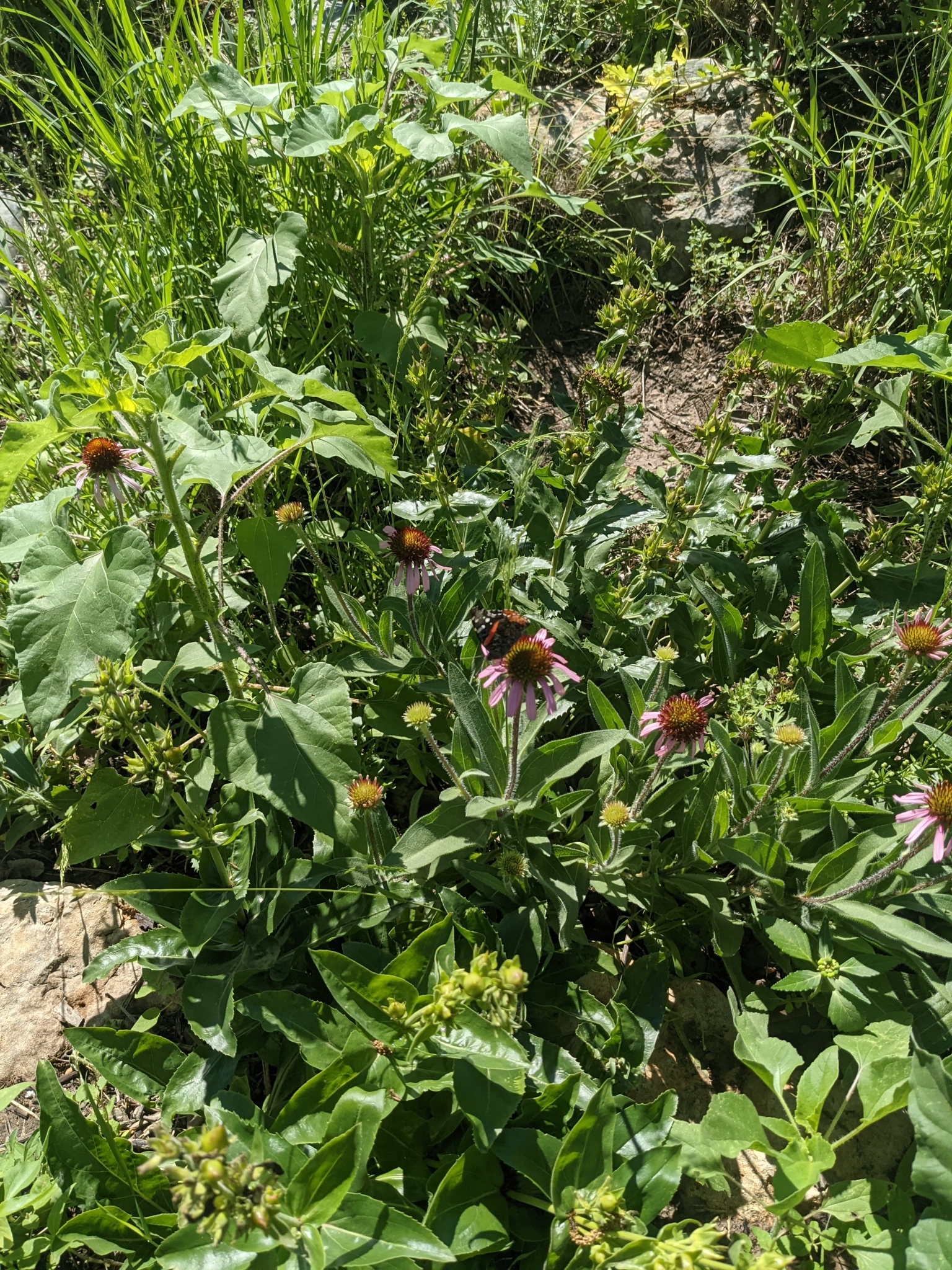 Vanessa atalanta | species | Echinacea angustifolia | species | visits | Animalia | Arthropoda | Insecta | Lepidoptera | Nymphalidae | Vanessa | Plantae | Tracheophyta | Magnoliopsida | Asterales | Asteraceae | Echinacea | 29.575714 | -98.576887 | 2021 | 5 | 2 | http://creativecommons.org/licenses/by/4.0/ | https://www.inaturalist.org/observations/76564432 | |