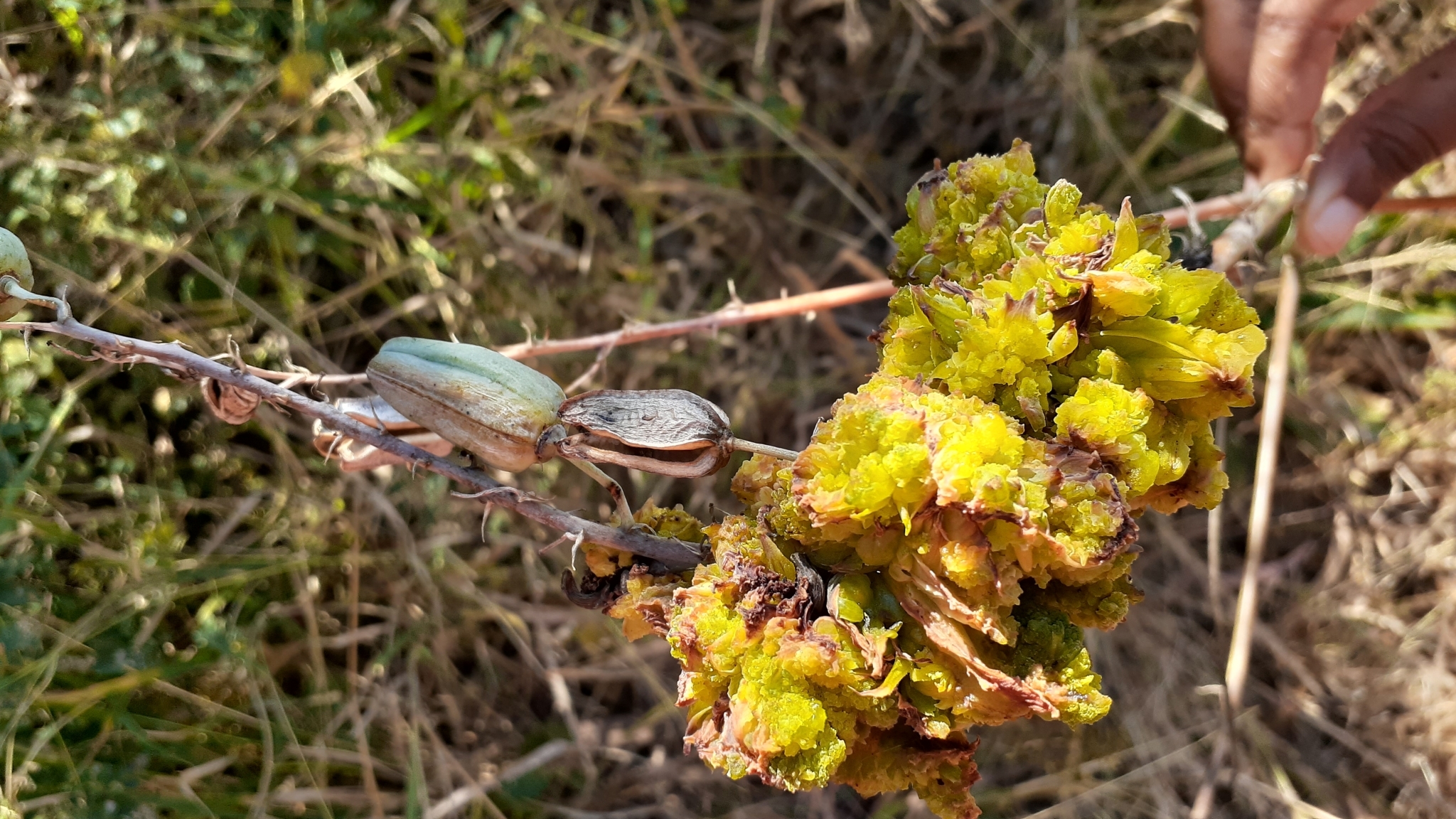 Aceria aloinis | species | Aloe | genus | hasHost | Animalia | Arthropoda | Arachnida | Trombidiformes | Eriophyidae | Aceria | Plantae | Tracheophyta | Liliopsida | Asparagales | Asphodelaceae | Aloe | -25.773752 | 28.292661 | 2021 | 5 | 2 | http://creativecommons.org/licenses/by-nc/4.0/ | https://www.inaturalist.org/observations/76466089 | |