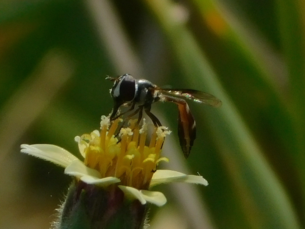 Dioprosopa clavatus | species | Tridax procumbens | species | visitsFlowersOf | Animalia | Arthropoda | Insecta | Diptera | Syrphidae | Dioprosopa | Plantae | Tracheophyta | Magnoliopsida | Asterales | Asteraceae | Tridax | 26.02856 | -80.318938 | 2021 | 5 | 1 | http://creativecommons.org/publicdomain/zero/1.0/ | https://www.inaturalist.org/observations/76377558 | |