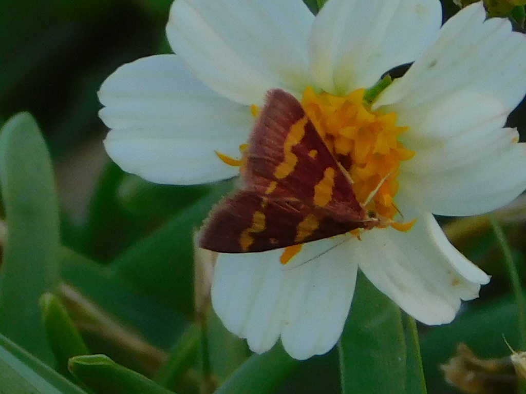Pyrausta tyralis | species | Bidens alba | species | visitsFlowersOf | Animalia | Arthropoda | Insecta | Lepidoptera | Crambidae | Pyrausta | Plantae | Tracheophyta | Magnoliopsida | Asterales | Asteraceae | Bidens | 26.011486 | -80.270033 | 2021 | 5 | 1 | http://creativecommons.org/publicdomain/zero/1.0/ | https://www.inaturalist.org/observations/76377582 | |