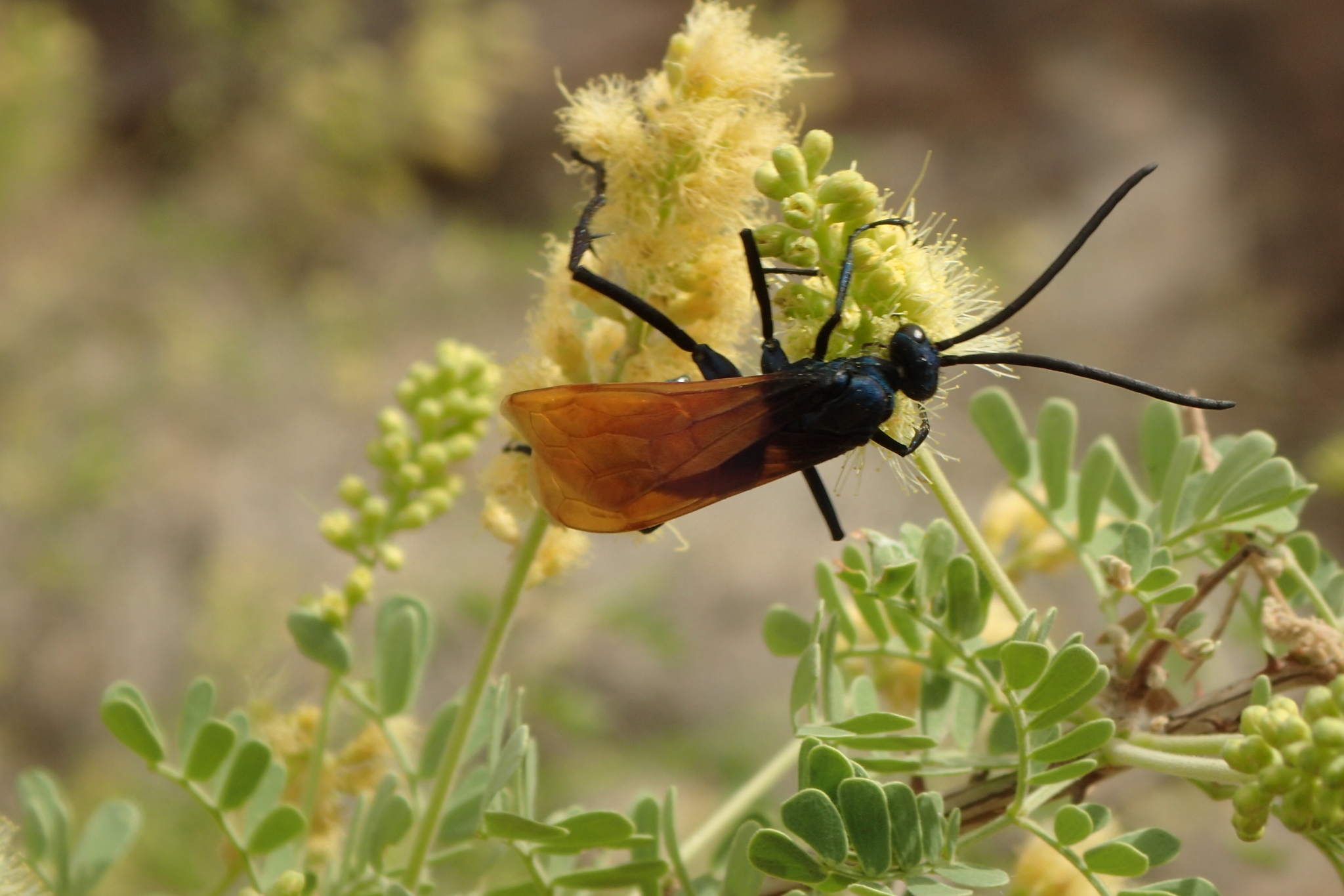 Pepsis thisbe | species | Senegalia greggii | species | visitsFlowersOf | Animalia | Arthropoda | Insecta | Hymenoptera | Pompilidae | Pepsis | Plantae | Tracheophyta | Magnoliopsida | Fabales | Fabaceae | Senegalia | 33.809803 | -116.556197 | 2021 | 5 | 1 | http://creativecommons.org/licenses/by-nc/4.0/ | https://www.inaturalist.org/observations/76401917 | |