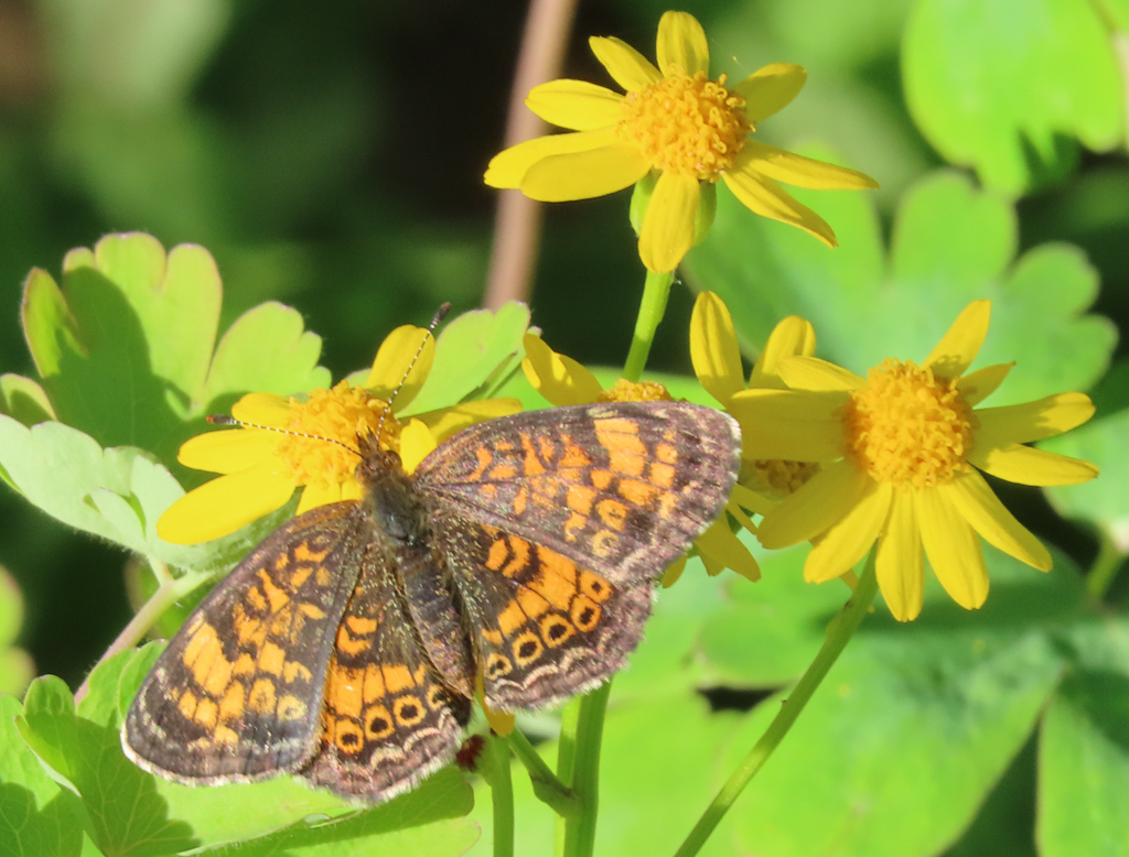 Phyciodes tharos | species | Packera obovata | species | eats | Animalia | Arthropoda | Insecta | Lepidoptera | Nymphalidae | Phyciodes | Plantae | Tracheophyta | Magnoliopsida | Asterales | Asteraceae | Packera | 38.946228 | -92.446573 | 2021 | 4 | 30 | http://creativecommons.org/licenses/by-nc-sa/4.0/ | https://www.inaturalist.org/observations/76312659 | |