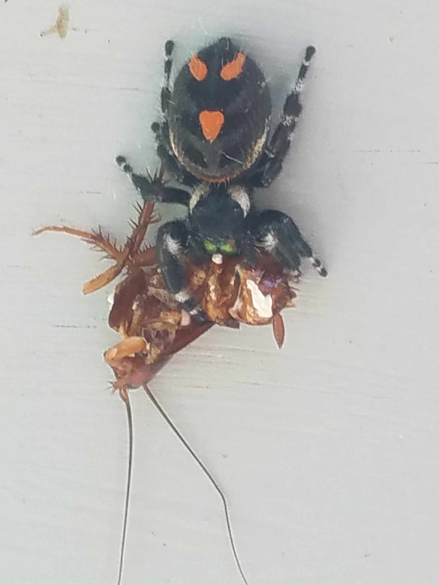Phidippus audax | species | Periplaneta | genus | eats | Animalia | Arthropoda | Arachnida | Araneae | Salticidae | Phidippus | Animalia | Arthropoda | Insecta | Blattodea | Blattidae | Periplaneta | 30.576528 | -84.132748 | 2021 | 5 | 1 | http://creativecommons.org/licenses/by-nc/4.0/ | https://www.inaturalist.org/observations/76313452 | |