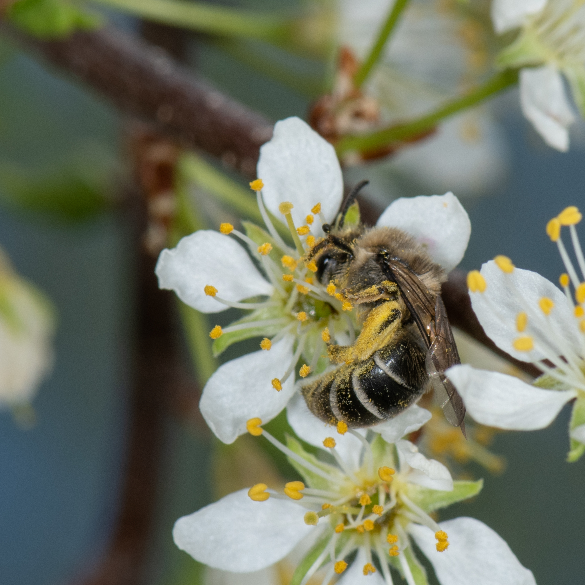 Colletes inaequalis | species | Prunus americana | species | visitsFlowersOf | Animalia | Arthropoda | Insecta | Hymenoptera | Colletidae | Colletes | Plantae | Tracheophyta | Magnoliopsida | Rosales | Rosaceae | Prunus | 44.900785 | -93.475538 | 2021 | 5 | 1 | http://creativecommons.org/licenses/by-nc/4.0/ | https://www.inaturalist.org/observations/76319599 | |