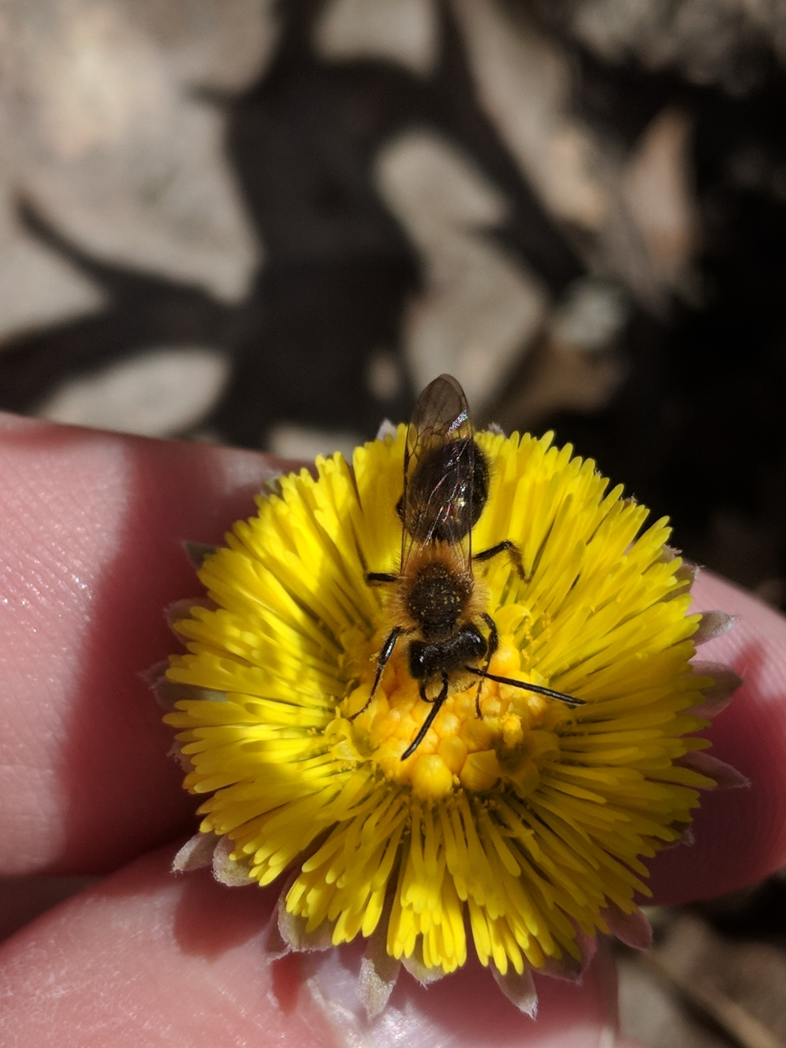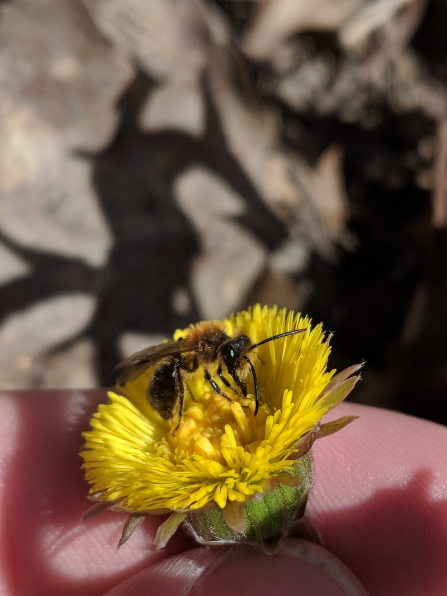 Andrena milwaukeensis | species | Tussilago farfara | species | visitsFlowersOf | Animalia | Arthropoda | Insecta | Hymenoptera | Andrenidae | Andrena | Plantae | Tracheophyta | Magnoliopsida | Asterales | Asteraceae | Tussilago | 43.274663 | -73.173638 | 2021 | 4 | 27 | http://creativecommons.org/licenses/by-nc/4.0/ | https://www.inaturalist.org/observations/75995319 | |