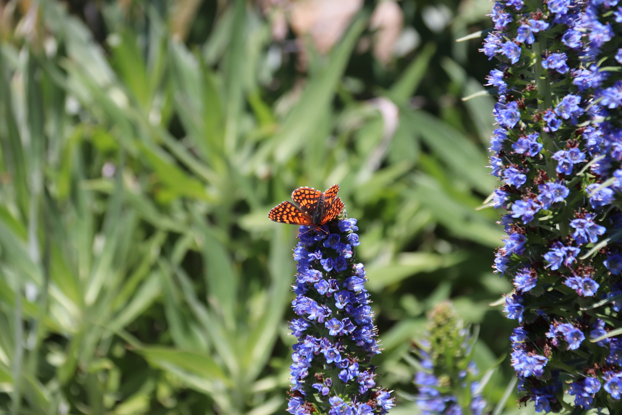 Chlosyne palla | species | Echium candicans | species | eats | Animalia | Arthropoda | Insecta | Lepidoptera | Nymphalidae | Chlosyne | Plantae | Tracheophyta | Magnoliopsida | Boraginales | Boraginaceae | Echium | 38.561463 | -122.67931 | 2021 | 4 | 27 | http://creativecommons.org/licenses/by-nc/4.0/ | https://www.inaturalist.org/observations/76013379 | |