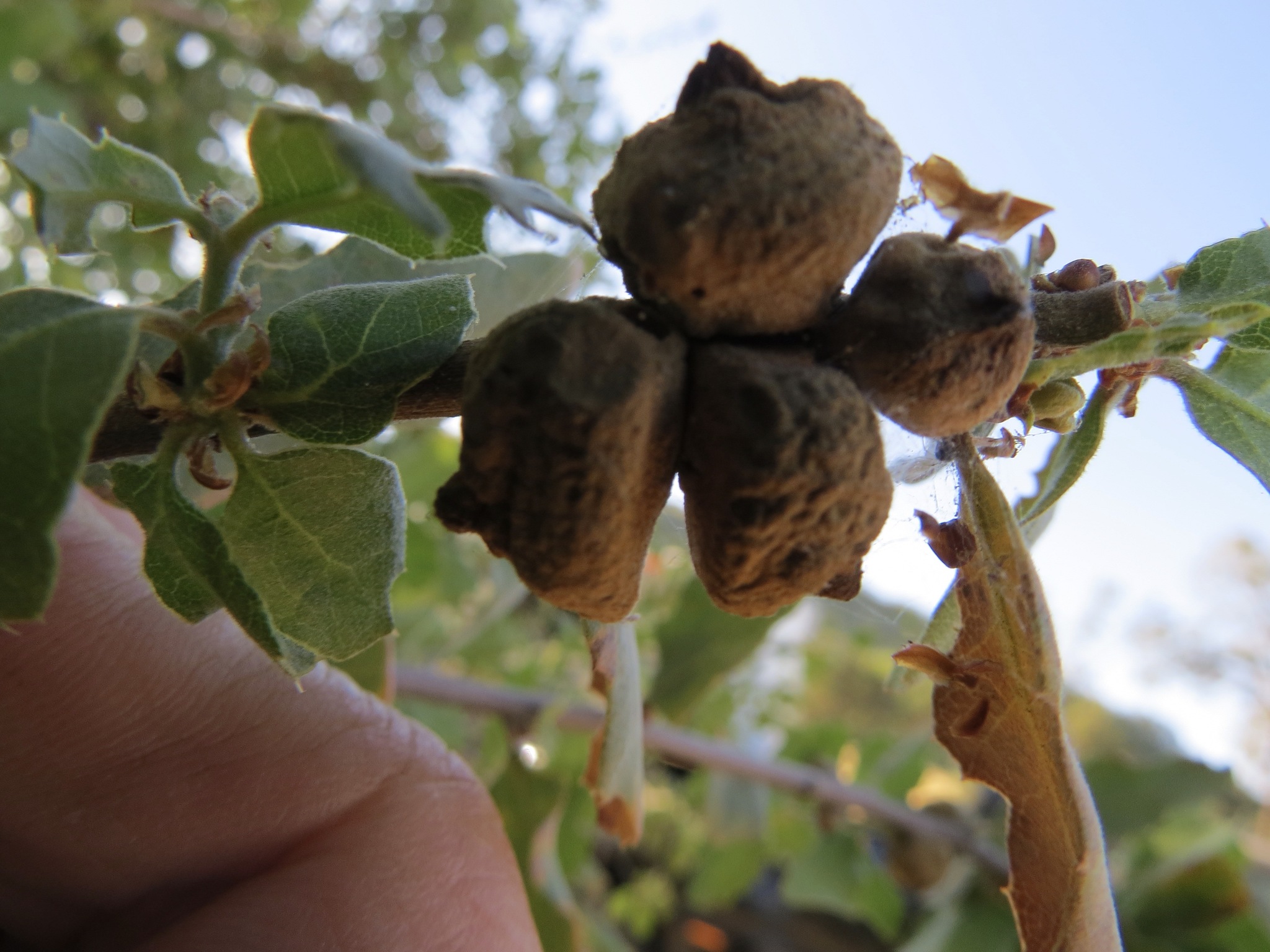Disholcaspis mamillana | species | Quercus douglasii | species | hasHost | Animalia | Arthropoda | Insecta | Hymenoptera | Cynipidae | Disholcaspis | Plantae | Tracheophyta | Magnoliopsida | Fagales | Fagaceae | Quercus | 35.433894 | -120.521647 | 2021 | 4 | 22 | http://creativecommons.org/licenses/by/4.0/ | https://www.inaturalist.org/observations/76030060 | |