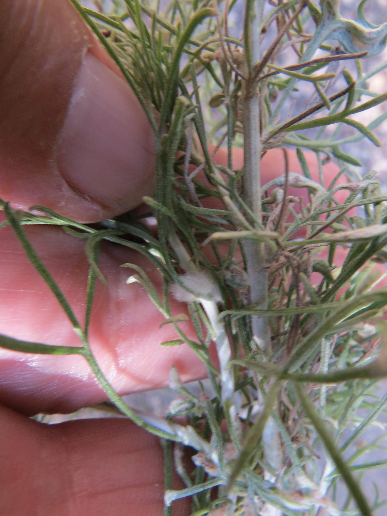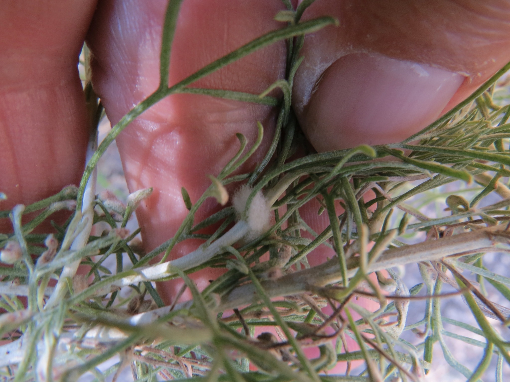 Rhopalomyia floccosa | species | Artemisia californica | species | hasHost | Animalia | Arthropoda | Insecta | Diptera | Cecidomyiidae | Rhopalomyia | Plantae | Tracheophyta | Magnoliopsida | Asterales | Asteraceae | Artemisia | 36.146184 | -121.199509 | 2021 | 4 | 22 | http://creativecommons.org/licenses/by/4.0/ | https://www.inaturalist.org/observations/75737098 | |