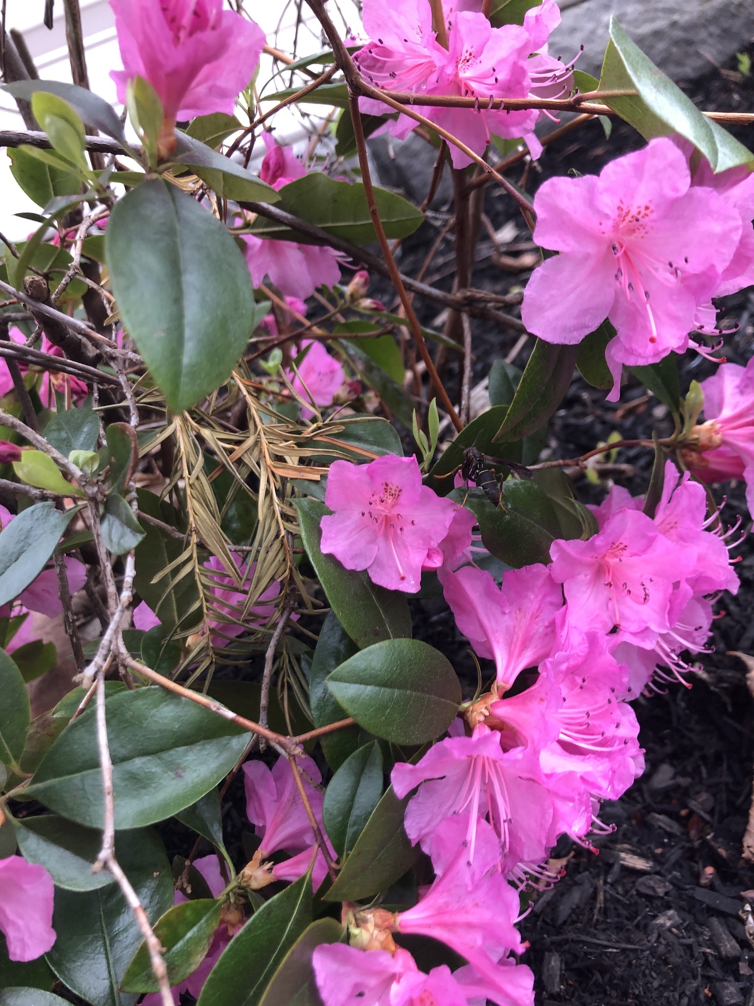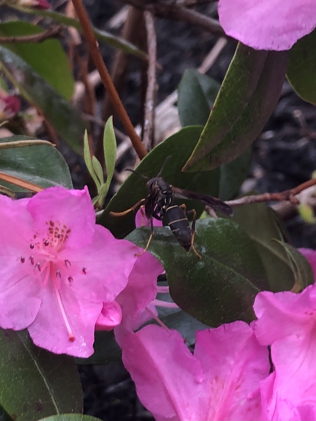 Polistes fuscatus | species | Rhododendron | genus | visitsFlowersOf | Animalia | Arthropoda | Insecta | Hymenoptera | Eumenidae | Polistes | Plantae | Tracheophyta | Magnoliopsida | Ericales | Ericaceae | Rhododendron | 42.593305 | -71.584283 | 2021 | 4 | 28 | http://creativecommons.org/licenses/by-nc/4.0/ | https://www.inaturalist.org/observations/75579916 | |