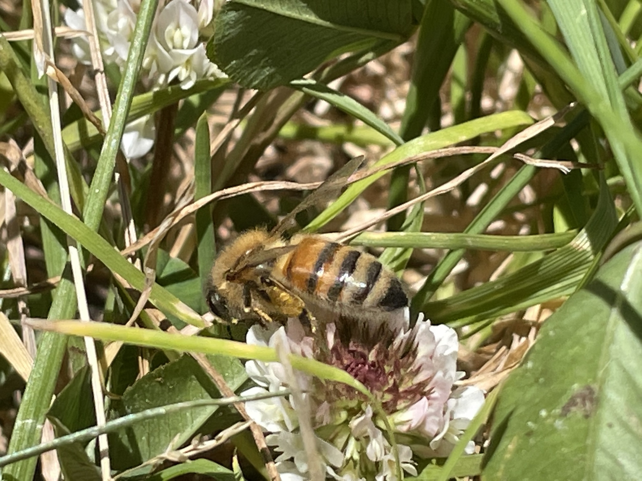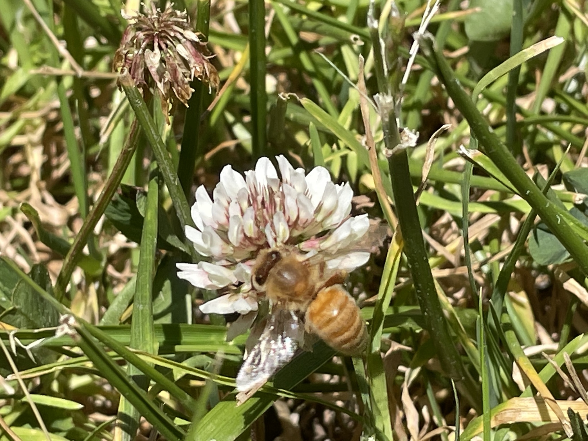 Apis mellifera | species | Trifolium repens | species | eats | Animalia | Arthropoda | Insecta | Hymenoptera | Apidae | Apis | Plantae | Tracheophyta | Magnoliopsida | Fabales | Fabaceae | Trifolium | 37.872397 | -122.263803 | 2021 | 4 | 27 | http://creativecommons.org/licenses/by-nc/4.0/ | https://www.inaturalist.org/observations/75617683 | |