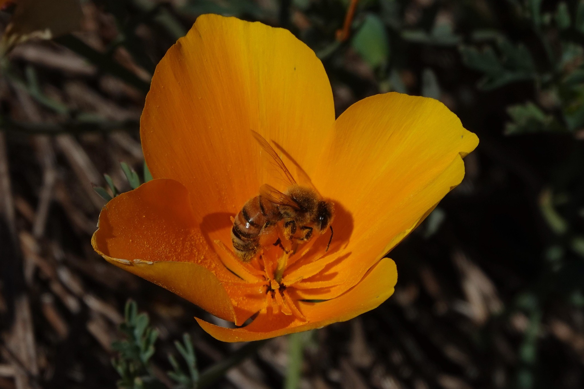 Apis mellifera | species | Eschscholzia californica | species | eats | Animalia | Arthropoda | Insecta | Hymenoptera | Apidae | Apis | Plantae | Tracheophyta | Magnoliopsida | Ranunculales | Papaveraceae | Eschscholzia | 37.16862 | -121.73006 | 2021 | 4 | 28 | http://creativecommons.org/licenses/by-nc/4.0/ | https://www.inaturalist.org/observations/75618362 | |
