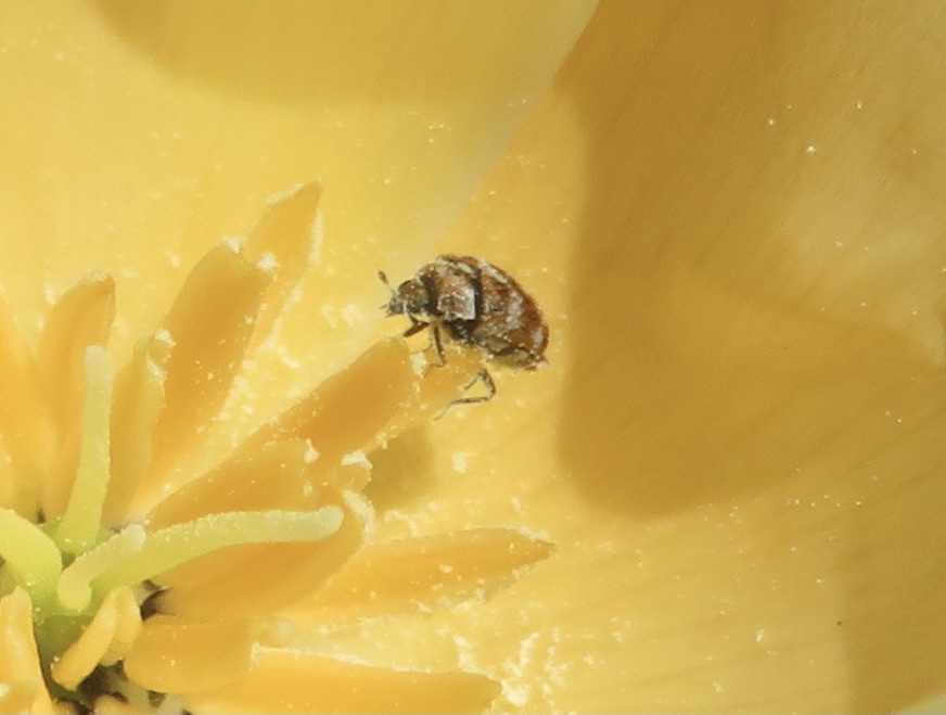Anthrenus verbasci | species | Eschscholzia | genus | eats | Animalia | Arthropoda | Insecta | Coleoptera | Dermestidae | Anthrenus | Plantae | Tracheophyta | Magnoliopsida | Ranunculales | Papaveraceae | Eschscholzia | 37.265568 | -121.945857 | 2021 | 4 | 28 | http://creativecommons.org/licenses/by-nc/4.0/ | https://www.inaturalist.org/observations/75571820 | |