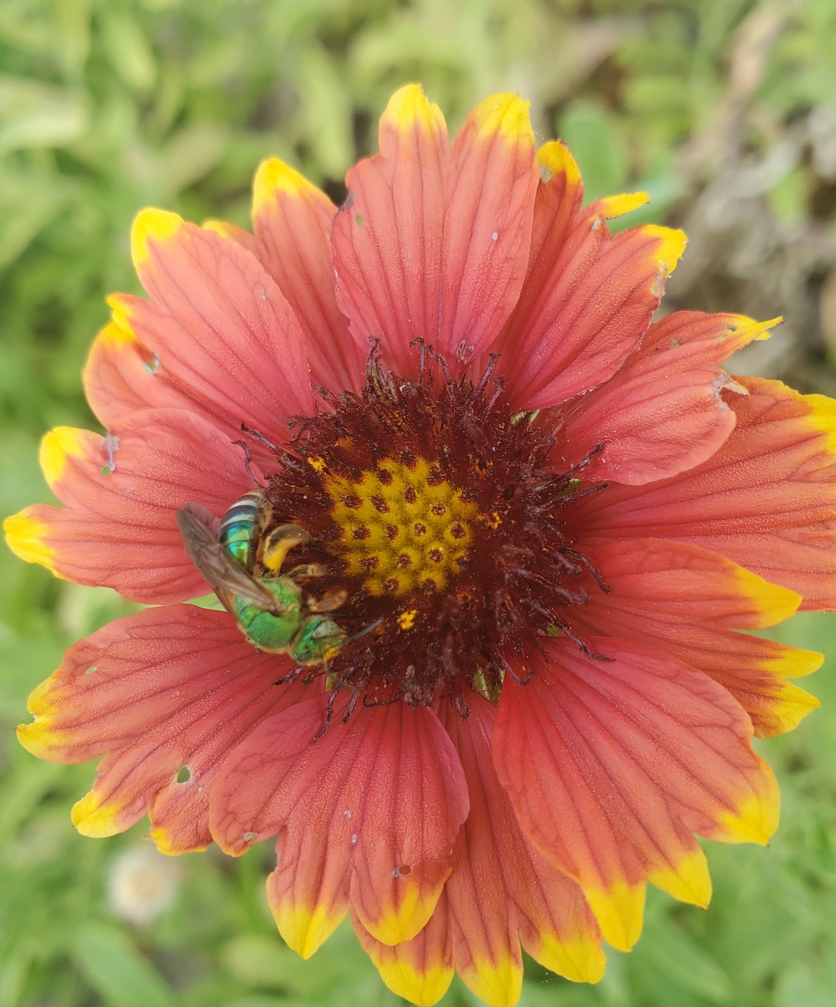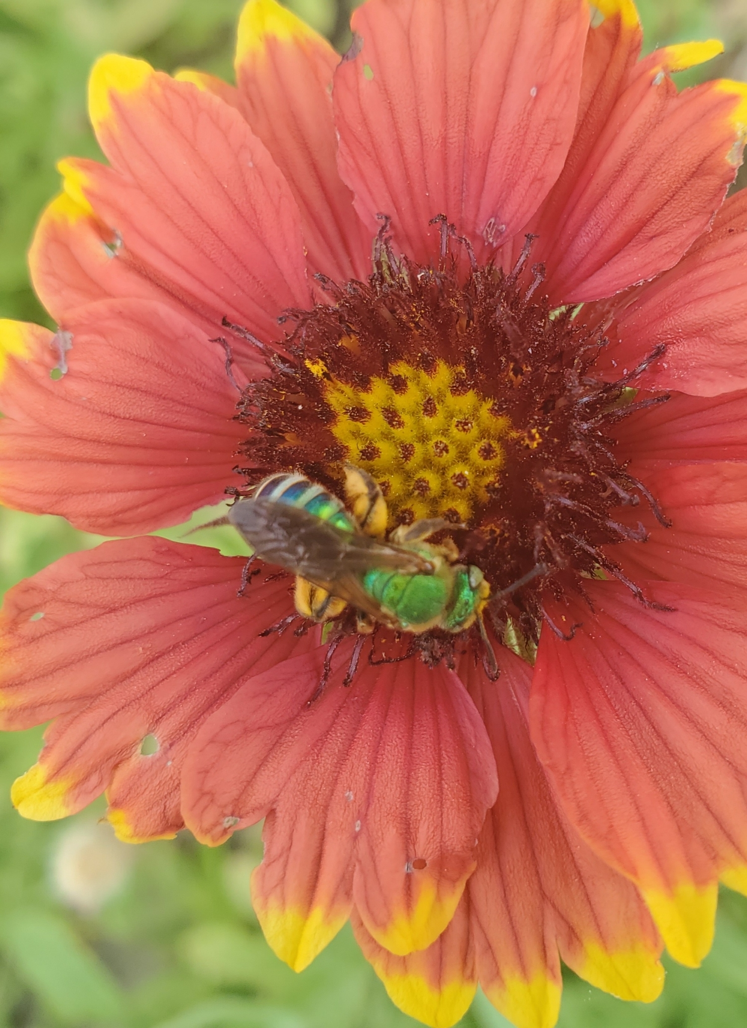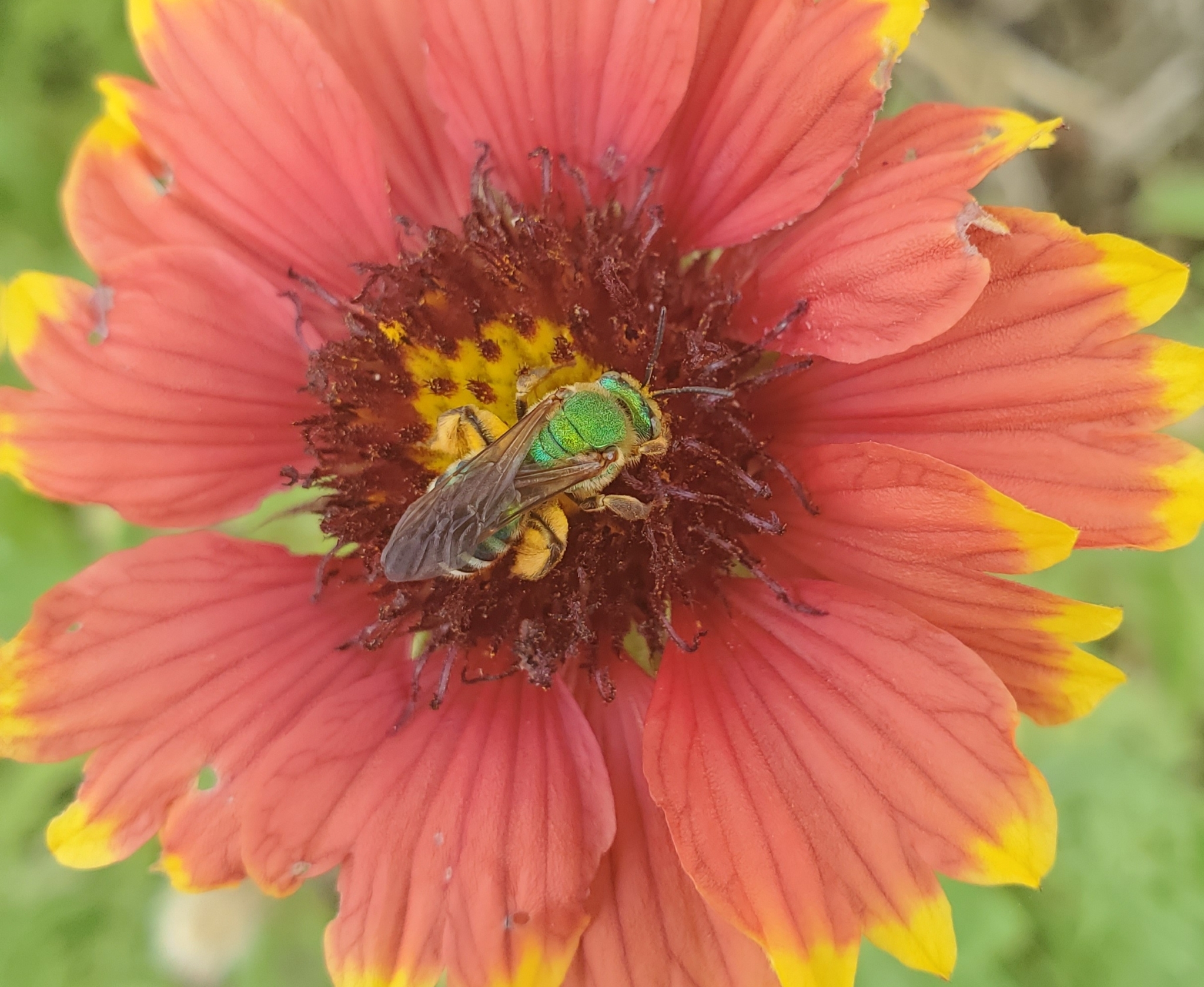Agapostemon splendens | species | Gaillardia pulchella | species | visitsFlowersOf | Animalia | Arthropoda | Insecta | Hymenoptera | Halictidae | Agapostemon | Plantae | Tracheophyta | Magnoliopsida | Asterales | Asteraceae | Gaillardia | 28.644593 | -80.728502 | 2021 | 4 | 28 | http://creativecommons.org/licenses/by-nc/4.0/ | https://www.inaturalist.org/observations/75580341 | |