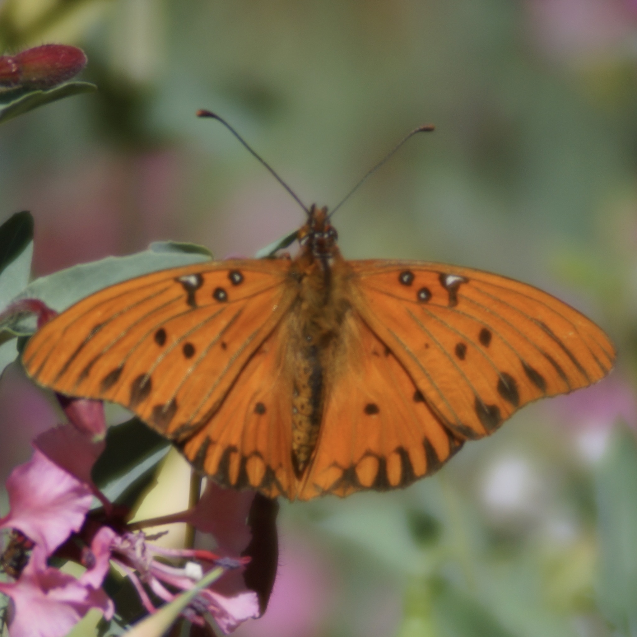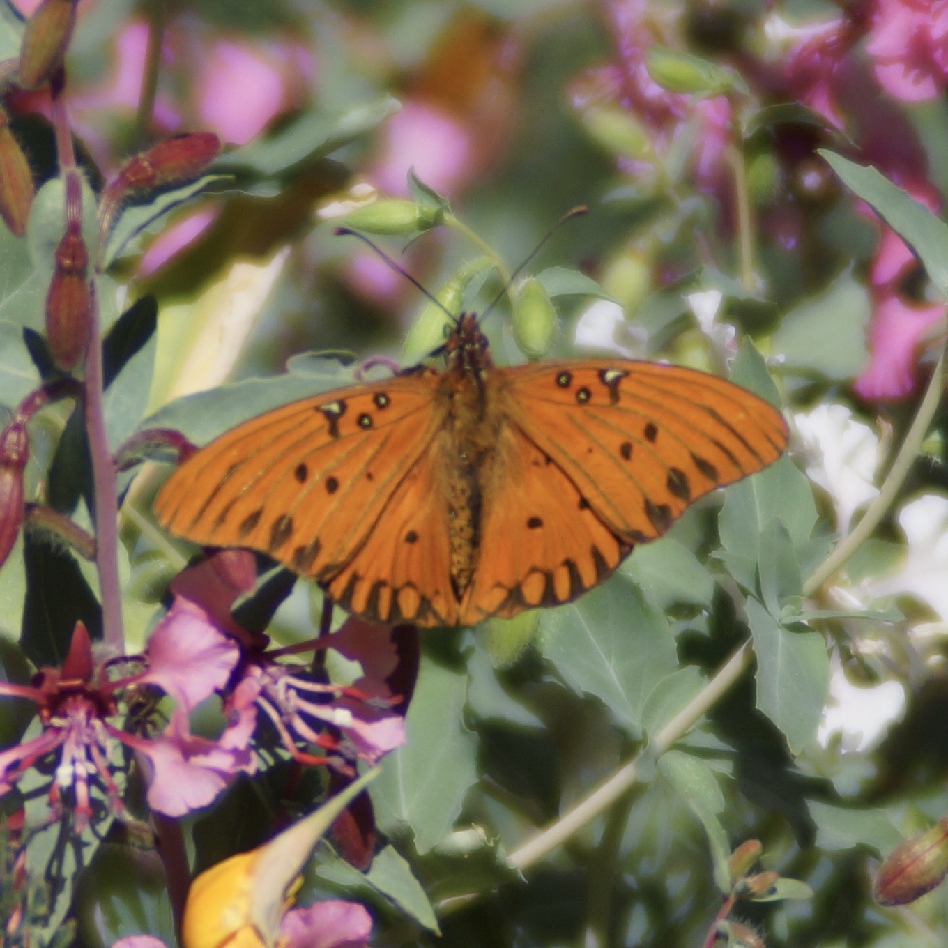 Dione vanillae | species | Clarkia | genus | eats | Animalia | Arthropoda | Insecta | Lepidoptera | Nymphalidae | Dione | Plantae | Tracheophyta | Magnoliopsida | Myrtales | Onagraceae | Clarkia | 37.393218 | -122.099117 | 2021 | 4 | 27 | http://creativecommons.org/licenses/by-nc/4.0/ | https://www.inaturalist.org/observations/75496784 | |