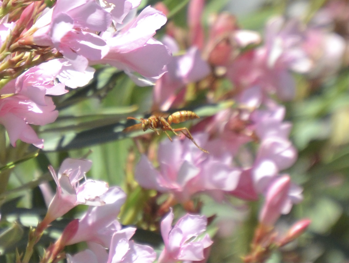 Polistes aurifer | species | Nerium oleander | species | visitsFlowersOf | Animalia | Arthropoda | Insecta | Hymenoptera | Eumenidae | Polistes | Plantae | Tracheophyta | Magnoliopsida | Gentianales | Apocynaceae | Nerium | 33.769026 | -116.2999 | 2021 | 4 | 25 | http://creativecommons.org/licenses/by-nc/4.0/ | https://www.inaturalist.org/observations/75280328 | |