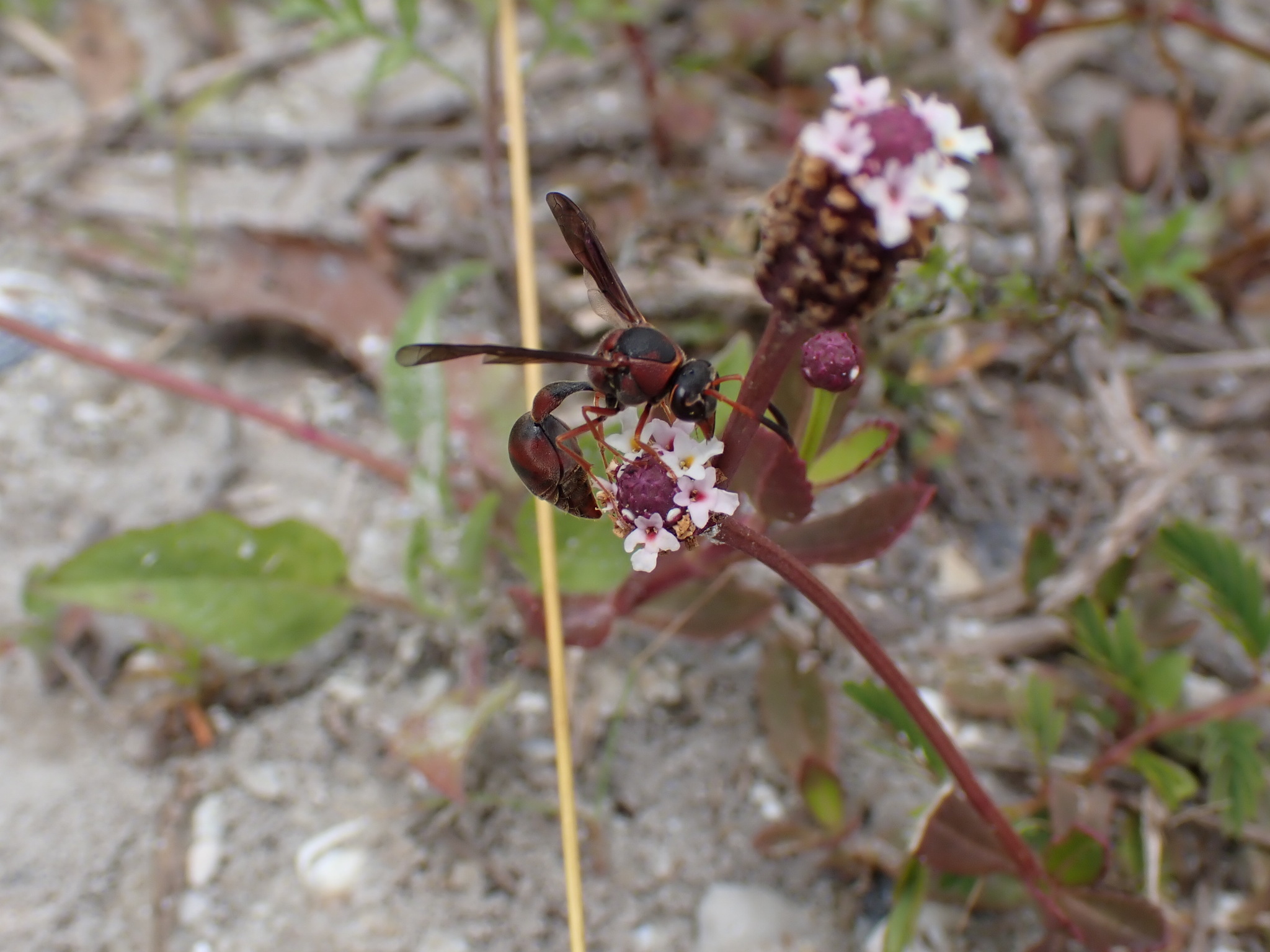 Eumenes smithii | species | Phyla nodiflora | species | visitsFlowersOf | Animalia | Arthropoda | Insecta | Hymenoptera | Vespidae | Eumenes | Plantae | Tracheophyta | Magnoliopsida | Lamiales | Verbenaceae | Phyla | 27.497133 | -82.677519 | 2021 | 4 | 25 | http://creativecommons.org/licenses/by-nc/4.0/ | https://www.inaturalist.org/observations/75197783 | |