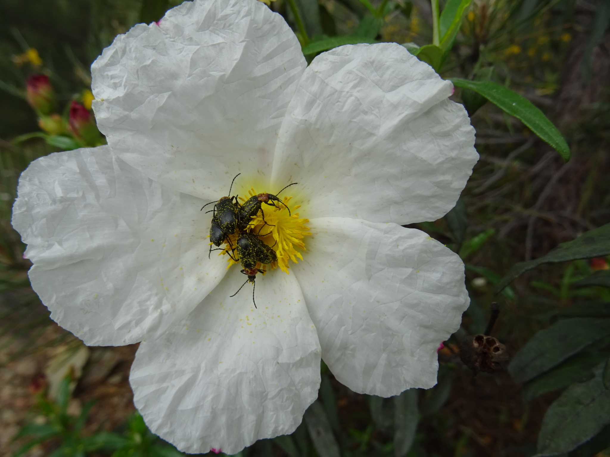 Heliotaurus ruficollis | species | Cistus | genus | visitsFlowersOf | Animalia | Arthropoda | Insecta | Coleoptera | Tenebrionidae | Heliotaurus | Plantae | Tracheophyta | Magnoliopsida | Malvales | Cistaceae | Cistus | 39.314703 | -7.332816 | 2021 | 4 | 24 | http://creativecommons.org/licenses/by-nc/4.0/ | https://www.inaturalist.org/observations/75200175 | |