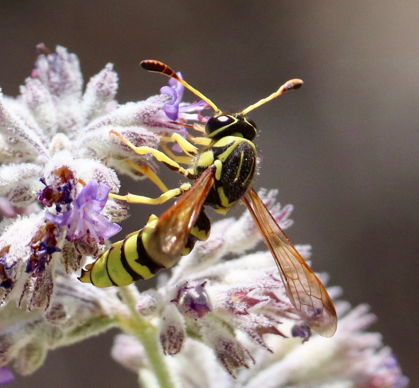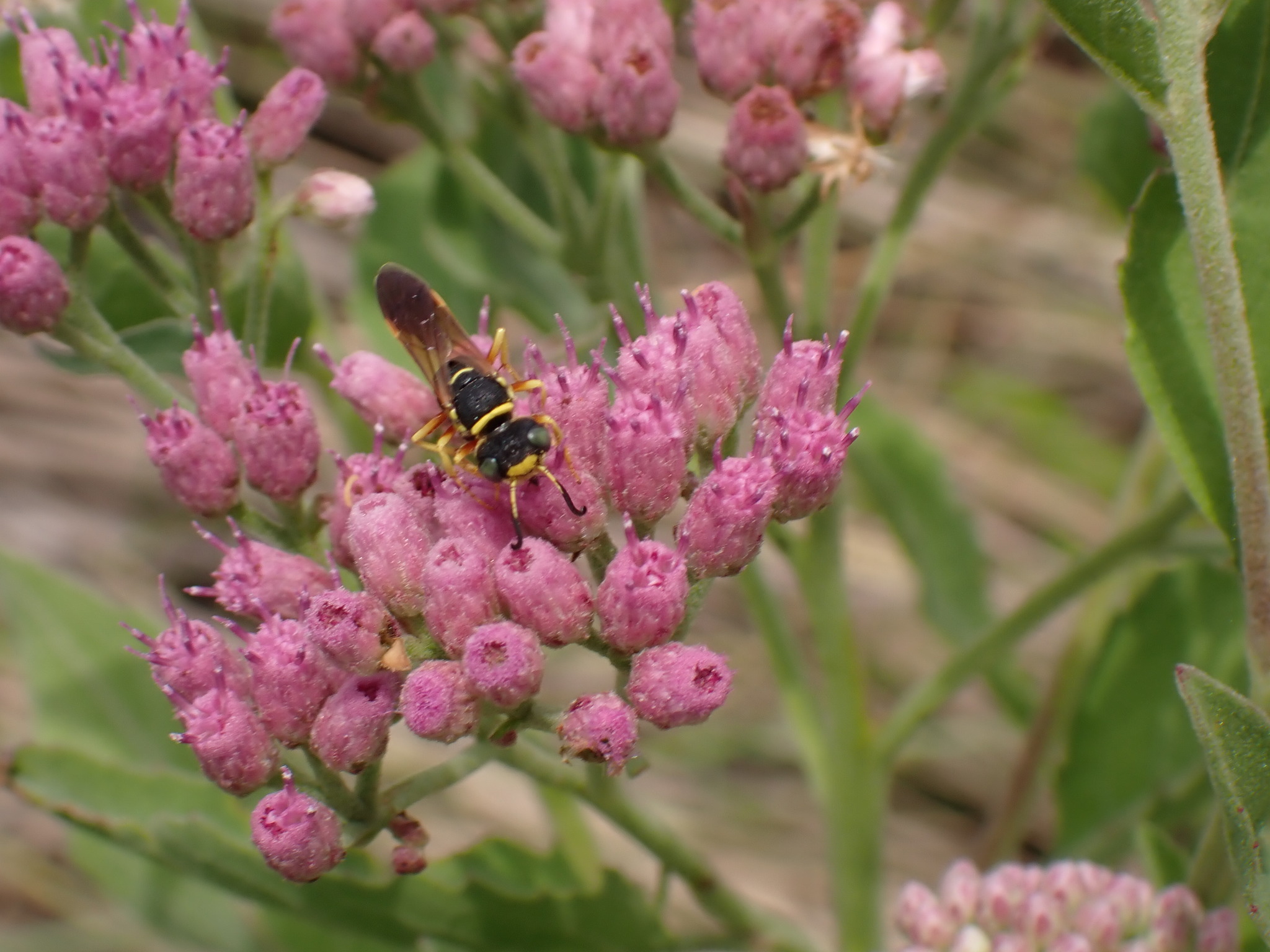 Eumenes smithii | species | Phyla nodiflora | species | visits | Animalia | Arthropoda | Insecta | Hymenoptera | Vespidae | Eumenes | Plantae | Tracheophyta | Magnoliopsida | Lamiales | Verbenaceae | Phyla | 27.497133 | -82.677519 | 2021 | 4 | 25 | http://creativecommons.org/licenses/by-nc/4.0/ | https://www.inaturalist.org/observations/75197783 | |