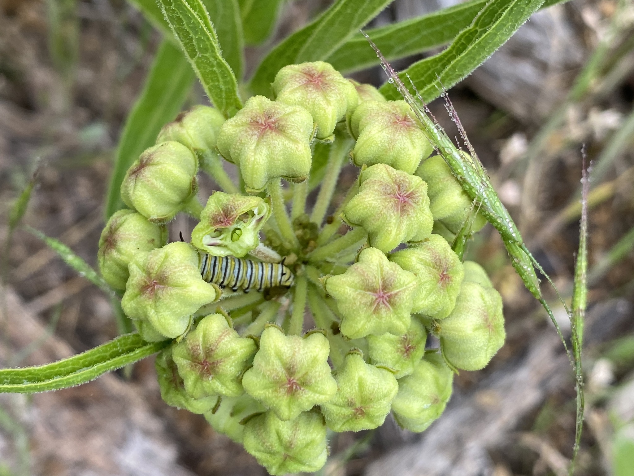 Danaus plexippus | species | Asclepias viridis | species | interactsWith | Animalia | Arthropoda | Insecta | Lepidoptera | Nymphalidae | Danaus | Plantae | Tracheophyta | Magnoliopsida | Gentianales | Apocynaceae | Asclepias | 32.020166 | -97.600707 | 2021 | 4 | 25 | http://creativecommons.org/licenses/by-nc/4.0/ | https://www.inaturalist.org/observations/75169953 | |