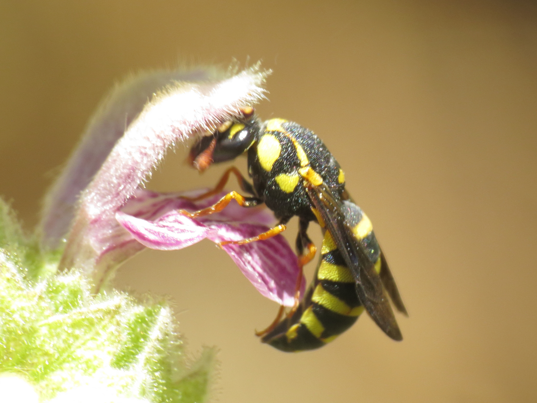 Celonites abbreviatus | species | Mentha | genus | visitsFlowersOf | Animalia | Arthropoda | Insecta | Hymenoptera | Masaridae | Celonites | Plantae | Tracheophyta | Magnoliopsida | Lamiales | Lamiaceae | Mentha | 36.980691 | -3.116383 | 2016 | 7 | 26 | http://creativecommons.org/licenses/by-nc/4.0/ | https://www.inaturalist.org/observations/75181333 |