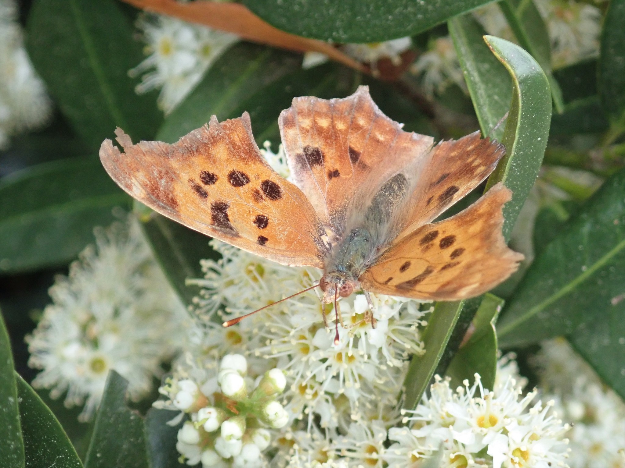 Polygonia interrogationis | species | Prunus laurocerasus | species | visits | Animalia | Arthropoda | Insecta | Lepidoptera | Nymphalidae | Polygonia | Plantae | Tracheophyta | Magnoliopsida | Rosales | Rosaceae | Prunus | 38.88074 | -77.09047 | 2021 | 4 | 24 | http://creativecommons.org/licenses/by-nc/4.0/ | https://www.inaturalist.org/observations/75184891 | |